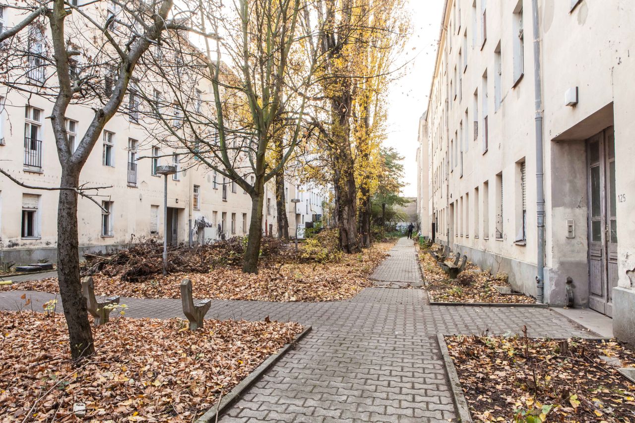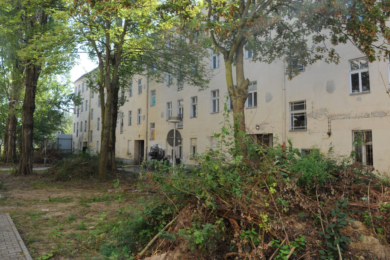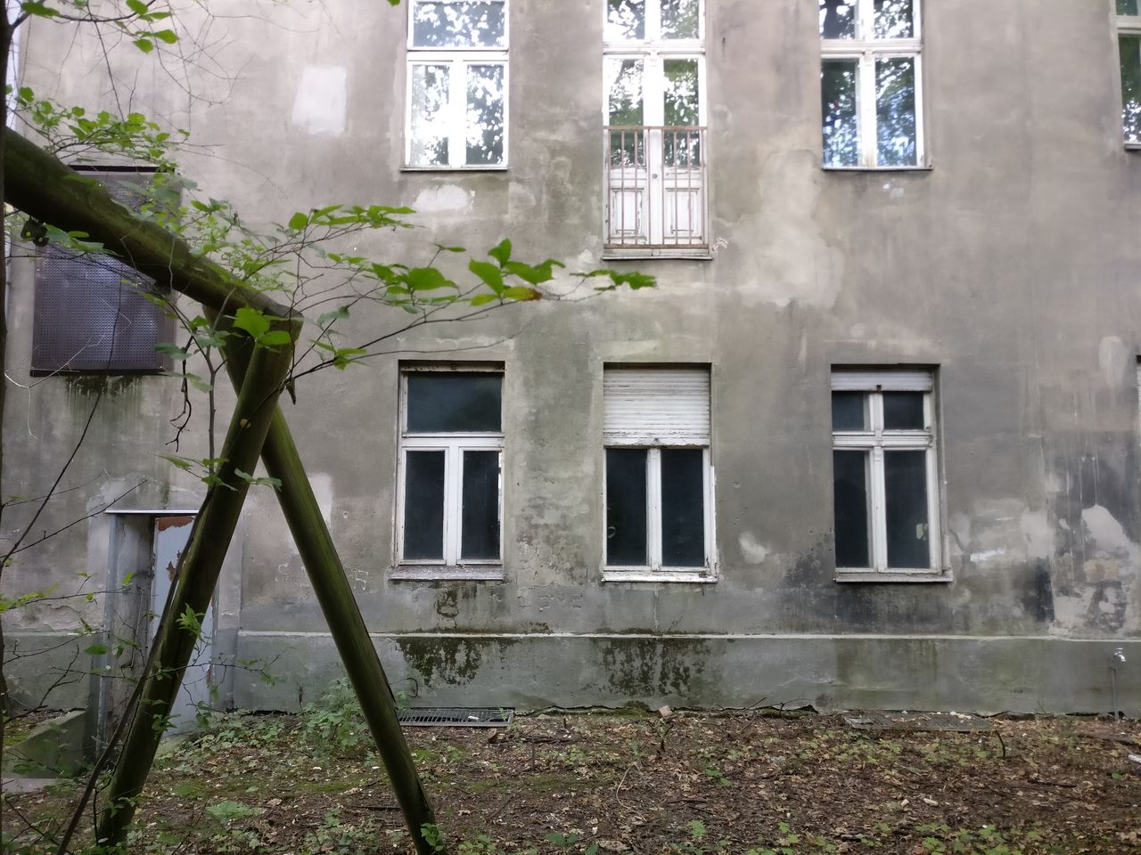 Bei diesem Motiv handelt es sich um einen unsanierten Häuserkomplex aus dem Baujahr 1917. Die insgesamt acht Altbau Wohnhäuser, stehen in 2 Riegeln und umschließen einen begrünten, abgeschirmten Innenhof (1150qm2). Mehrere große Bäume und Sitzbänke befinden sich im großen Innenhof. Es gibt einen weiteren Hinterhof (700qm2) mit morbidem Charme, begrenzt durch eine malerische Backsteinmauer und einen Zaun hinter dem 2ten Wohnhaus.