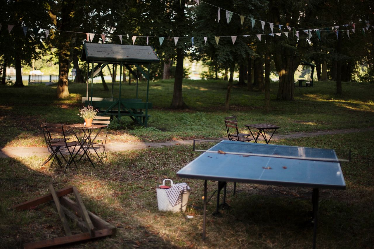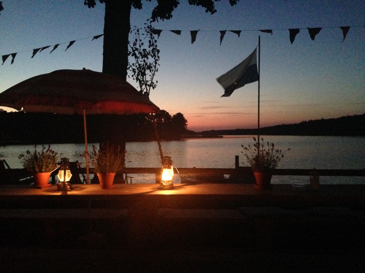 Außenanlage: waldartige Grünfläche ca. 6000 qm, Spielplatz, Feuerstelle, romantische Lichtung am Südufer, überdachte Veranda, Biergarten, Terrasse, 3x große Stege, 5x kleine Stege, nur über Fähre & Schiff zu erreichen, nicht über Land.