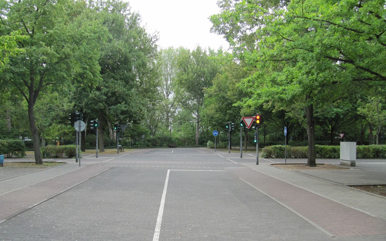 Großzügiges Außengelände mit realistischen Straßenzügen und Verkehrsampeln und -schildern in Originalgröße. Es können bestimmte Straßenszenen gedreht werden, in denen kein fließender Autoverkehr gezeigt wird, z.B. Parken, Ein- und Aussteigen in Wohngegenden mit kleineren Straßen oder in ländlichen Räumen.