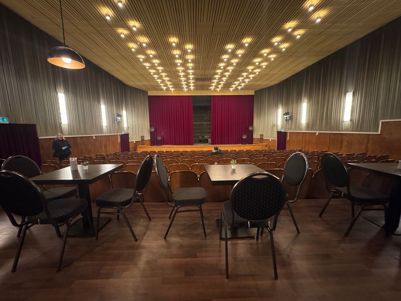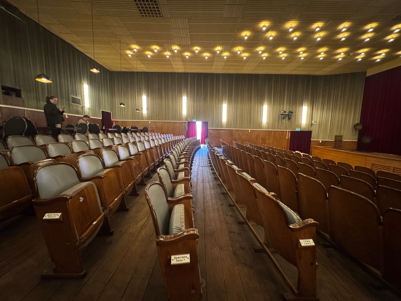 Der große Kinosaal bietet 199 Sitzplätze und verfügt über eine sehr charmante und großzügige Bühne. Das Foyer mit Bistro-Tischen hat eine kleine holzvertäfelte Bar mit Tresen.