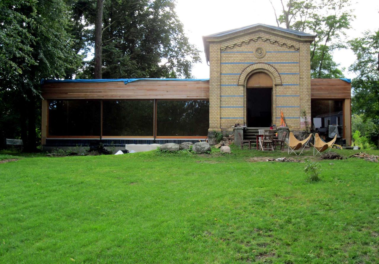 Kleine Kapelle mit Holzdecke und Wandgemälden, bildet mit angrenzendem Holzhaus eine Wohneinheit
