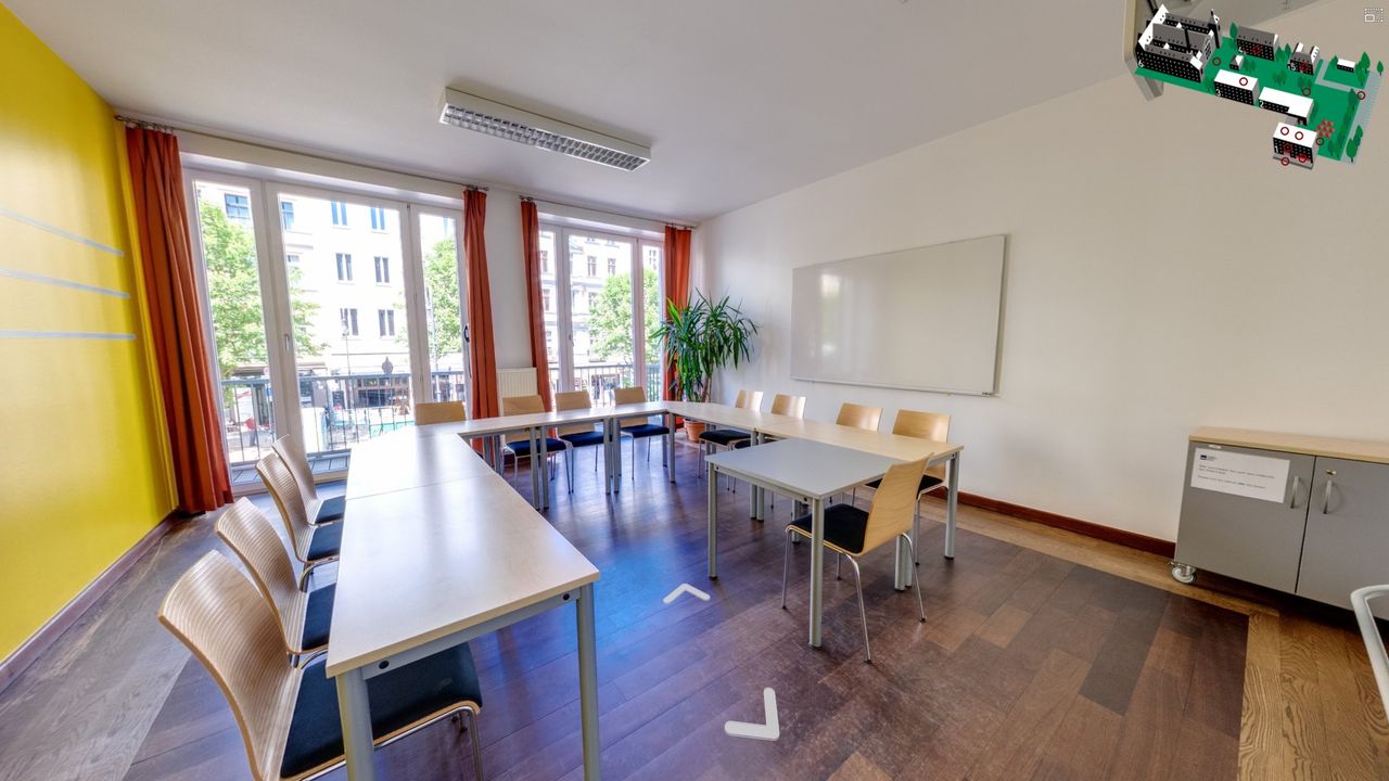 1) Stühle und Tische ausreichend vorhanden; Smartboard und Whiteboard optional verfügbar
