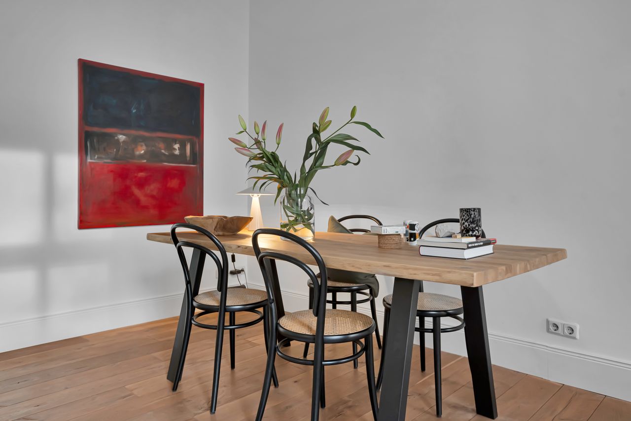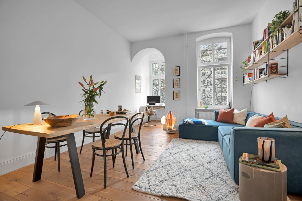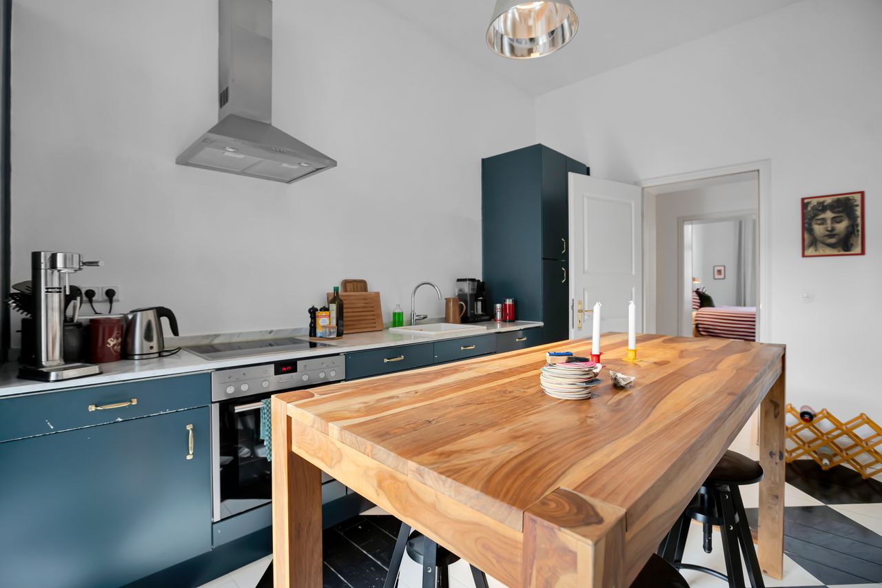 The apartment is located in the Located in the heart of Prenzlauer Berg, one of Berlin’s most sought-after neighbourhoods, this beautifully designed apartment is a perfect mix between new and old. Situated in a classic Altbau building, the apartment boasts high ceilings, elegant architecture, and large windows that fill the space with natural light.