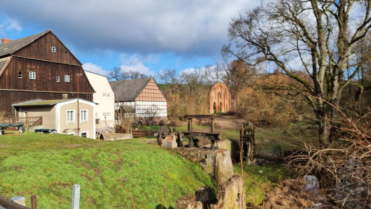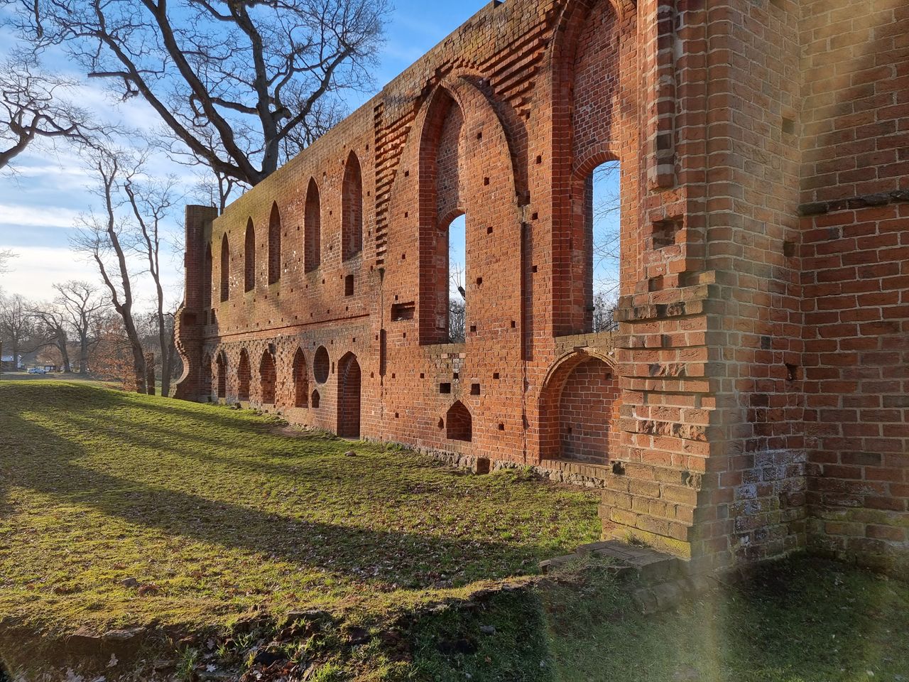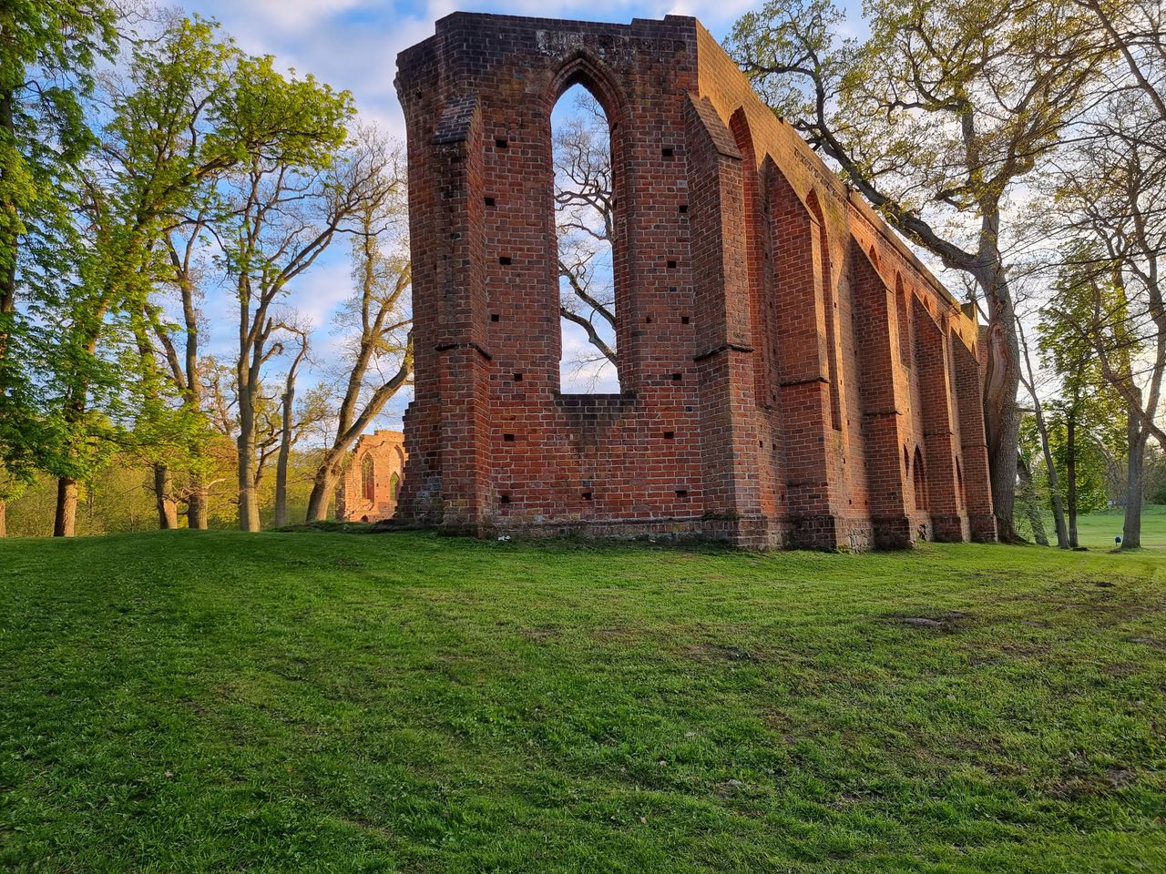 Große Ruinenreste am Waldrand, gemähte Wiesenflächen. Das Kloster wurde zu Beginn des 14 Jahrhunderts erbaut. Die nahe liegende Museumswassermühle der gleichen Epoche kann bei Bedarf als Drehort verwendet werden.