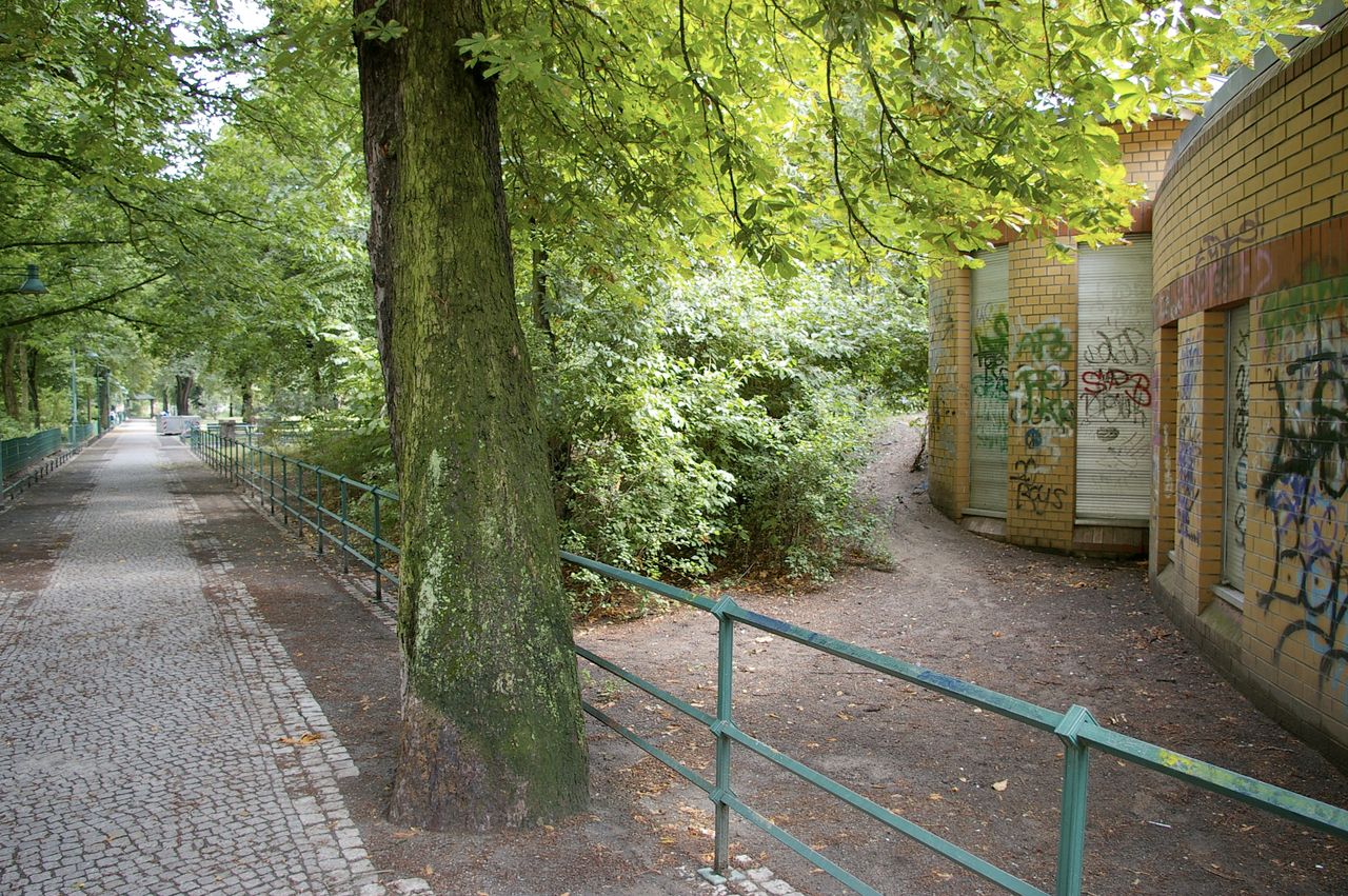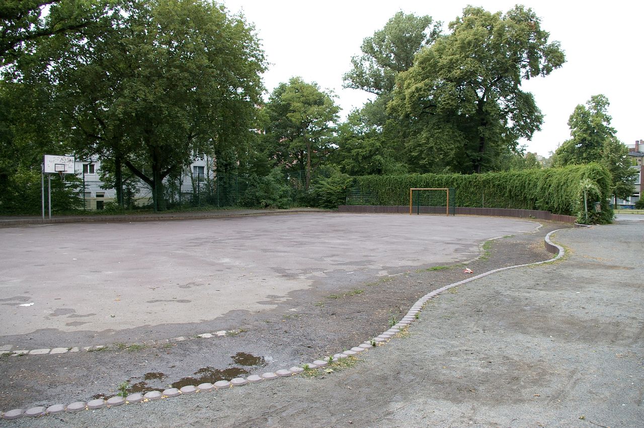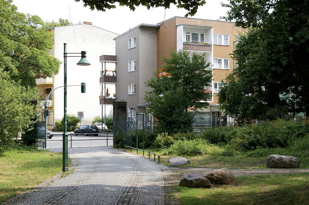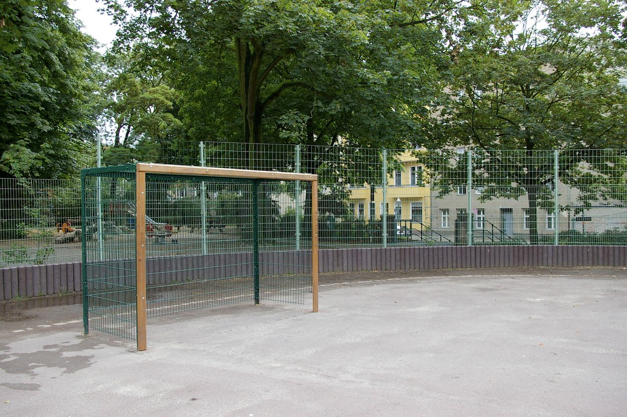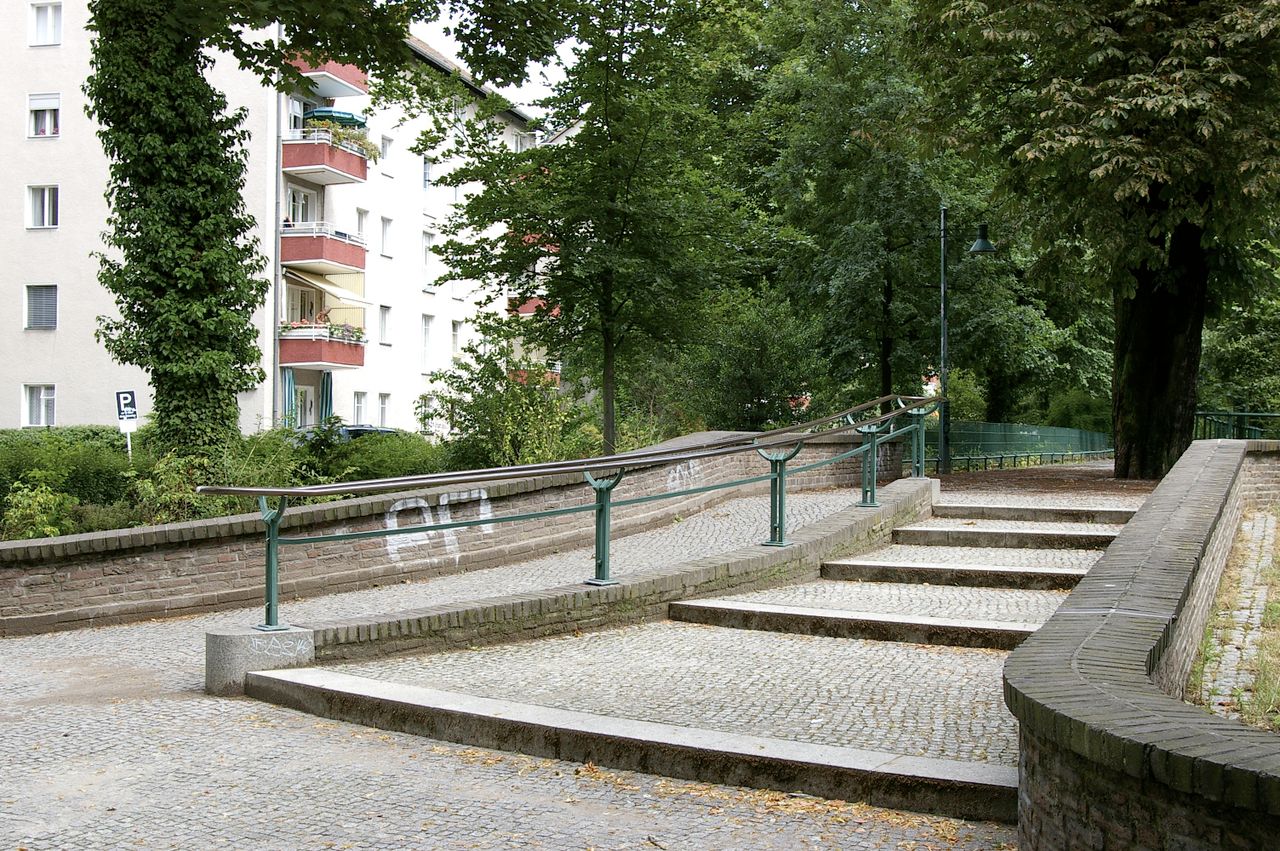 Kleiner, überschaubarer Park mit einem malerischen Pavillon in der Parkmitte, sowie einem Spielplatz, Parkbänken und einer Skulptur. Der Park ist umgeben von Wohnhäusern, hauptsächlich aus den 60er und 50er Jahren.