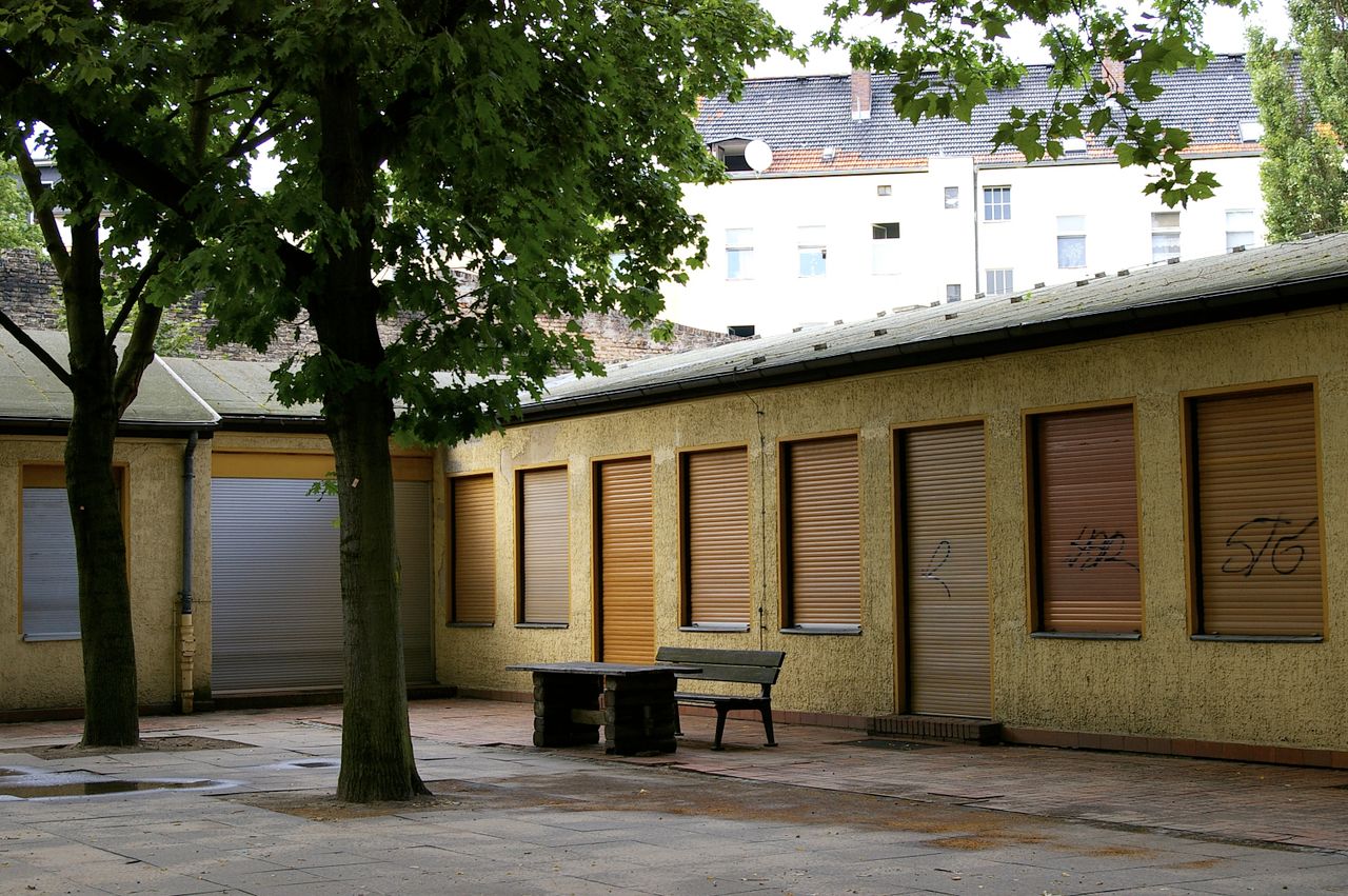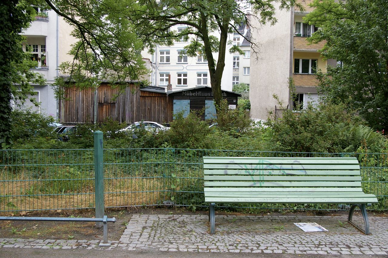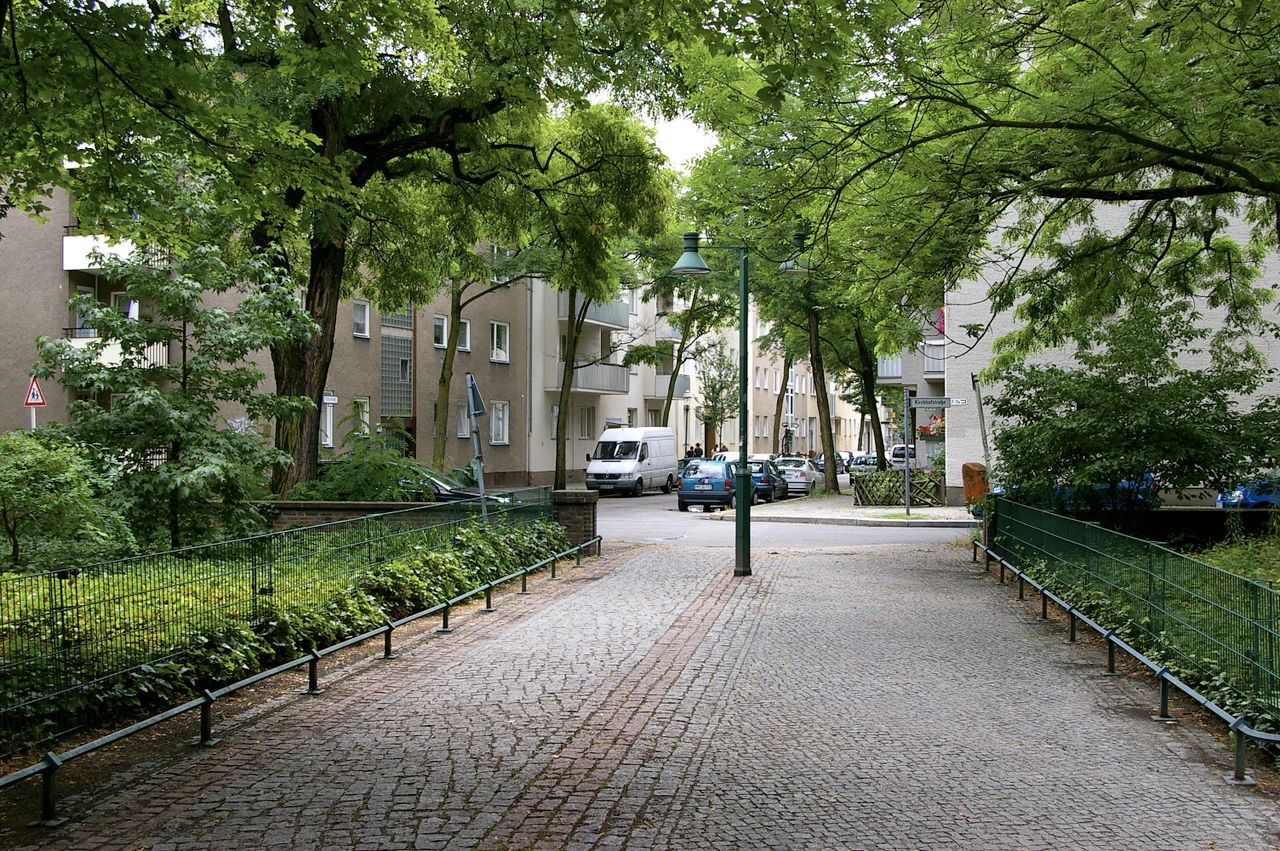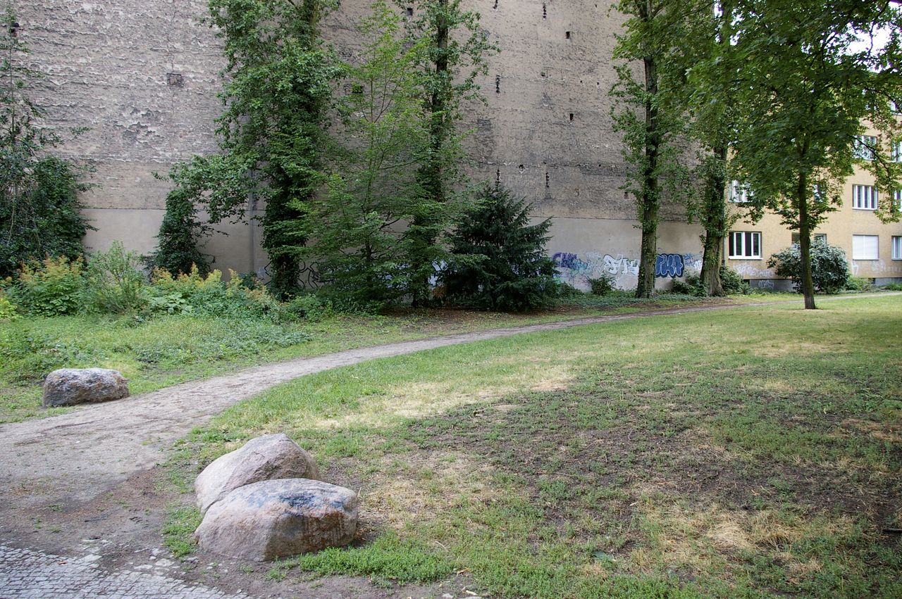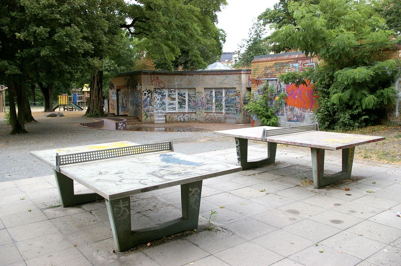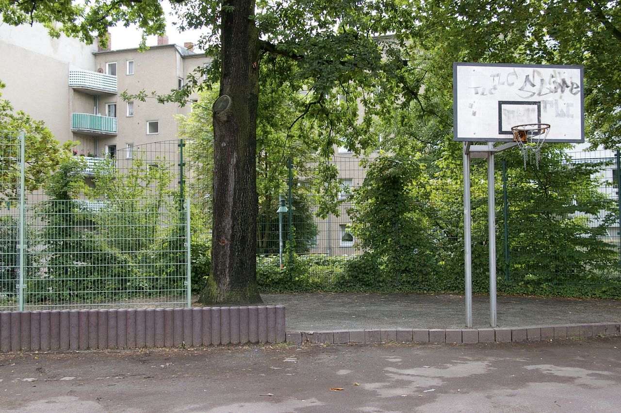 Kleiner, überschaubarer Park mit einem malerischen Pavillon in der Parkmitte, sowie einem Spielplatz, Parkbänken und einer Skulptur. Der Park ist umgeben von Wohnhäusern, hauptsächlich aus den 60er und 50er Jahren.