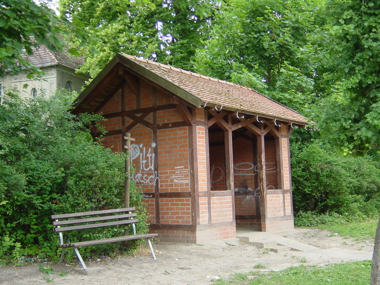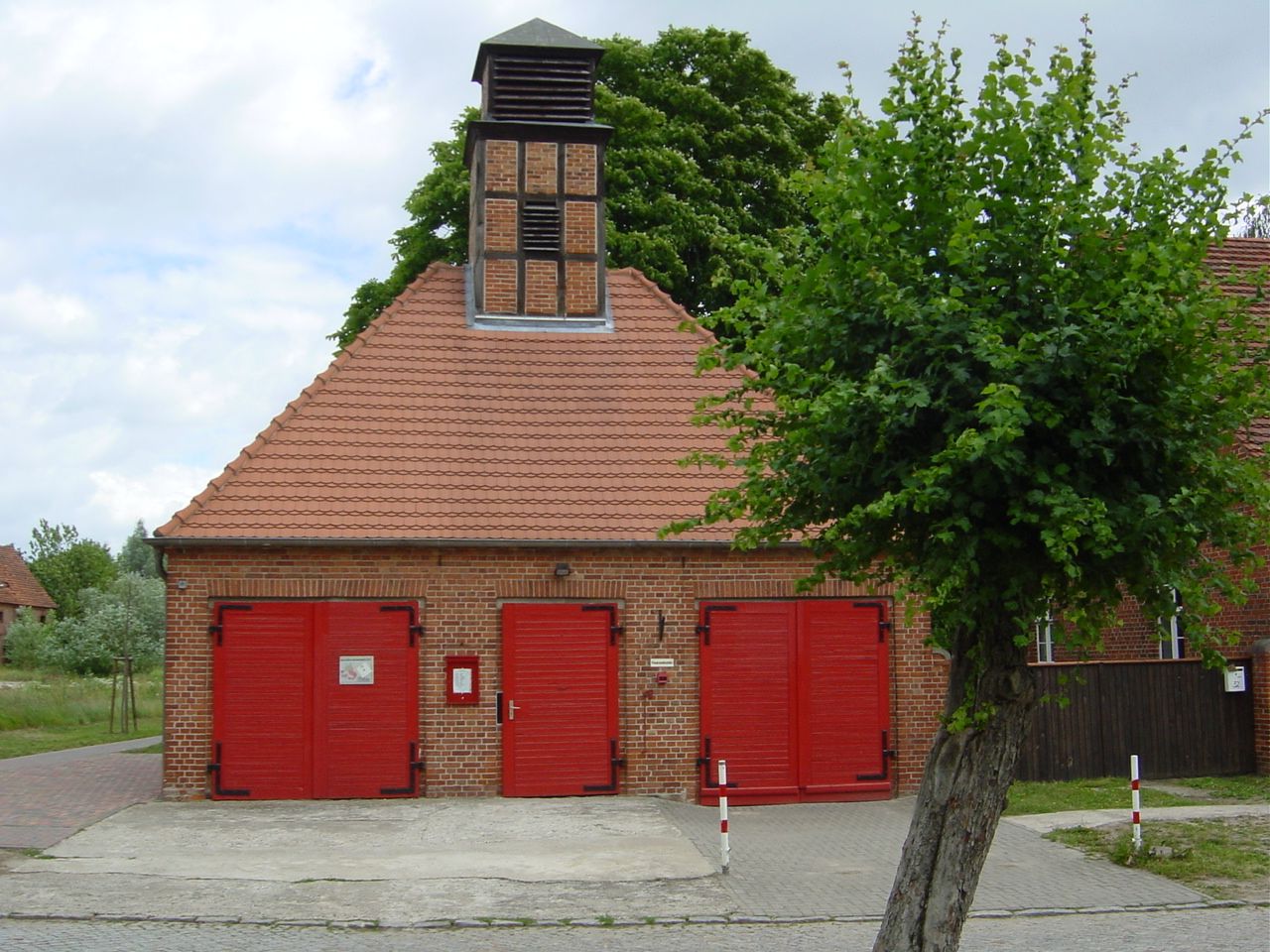 Idyllisches Dorf, größtenteils erhaltene ein- bis zweigeschossige Backsteinbauten an der Dorfstrasse, Feuerwehr, Schloss Krampfer, sowie Kirche aus Feldstein