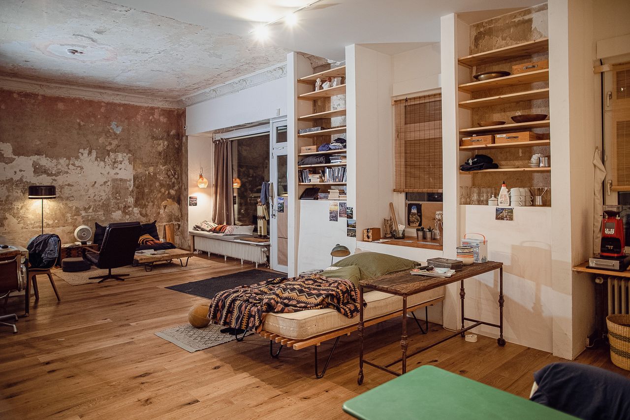 Mitten in Schöneberg bietet der Kyffhäuser 21 auf 80 m2 einen kreativen Raum für Film und Interviewszenen jeder Art. Der Hauptraum des ehemaligen Kolonialwarenladen ist 10x5 m groß und über 3,5 m hoch. Es gibt Starkstrom, er ist abdunkelbar, er liegt in einer ruhigen Strasse und das Sonnenlicht kommt erst ab 17 Uhr. Draußen ist genug Platz für externes Licht.