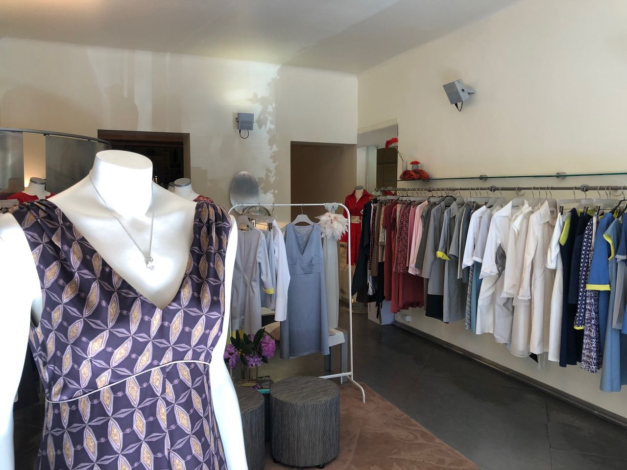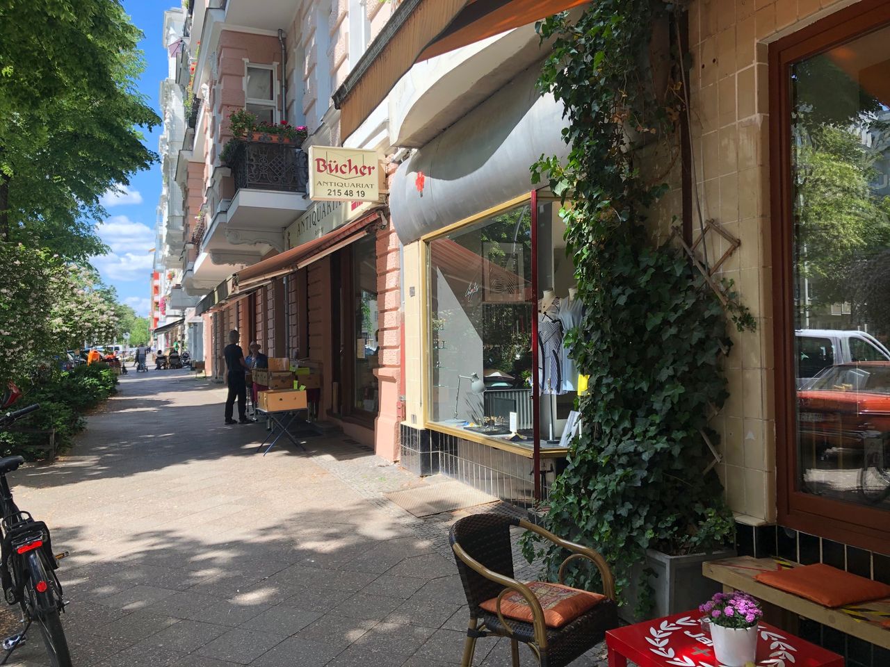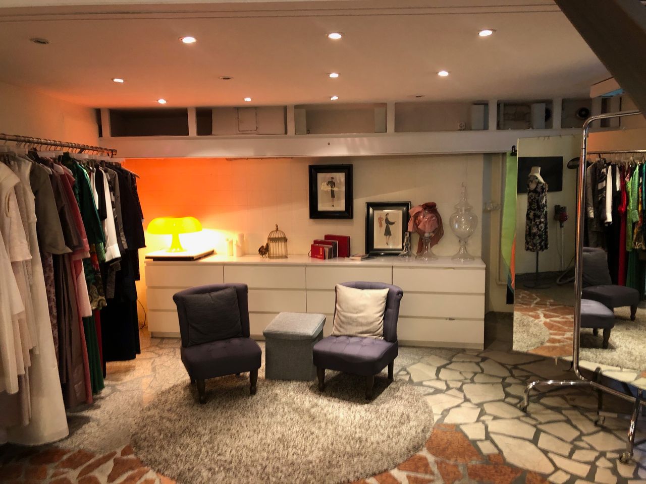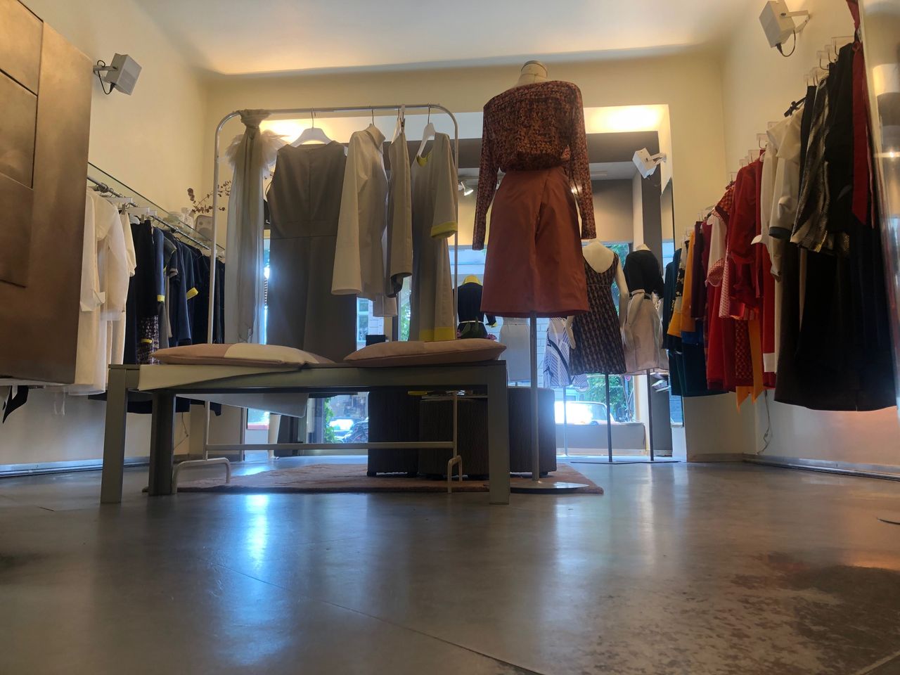 Laden mit Schneiderwerkstatt / - Atelier und Zugang zum Hinterhof Der Werkstattraum zeichnet sich durch hohe Decken aus, da Souterrain und Erdgeschoß eins sind. Eine Stahltreppe führt zu einer kleinen Empore.