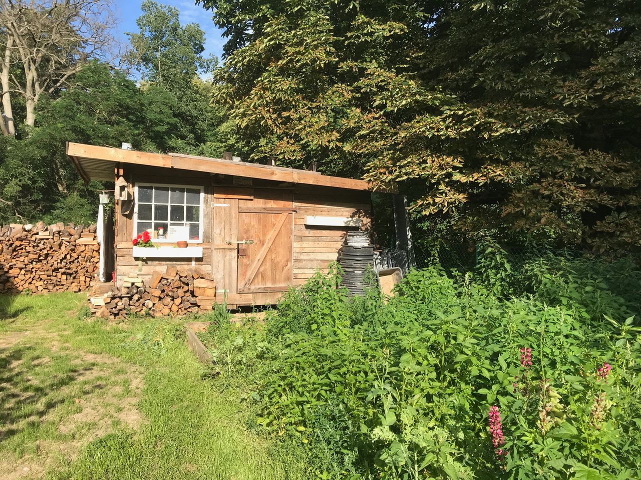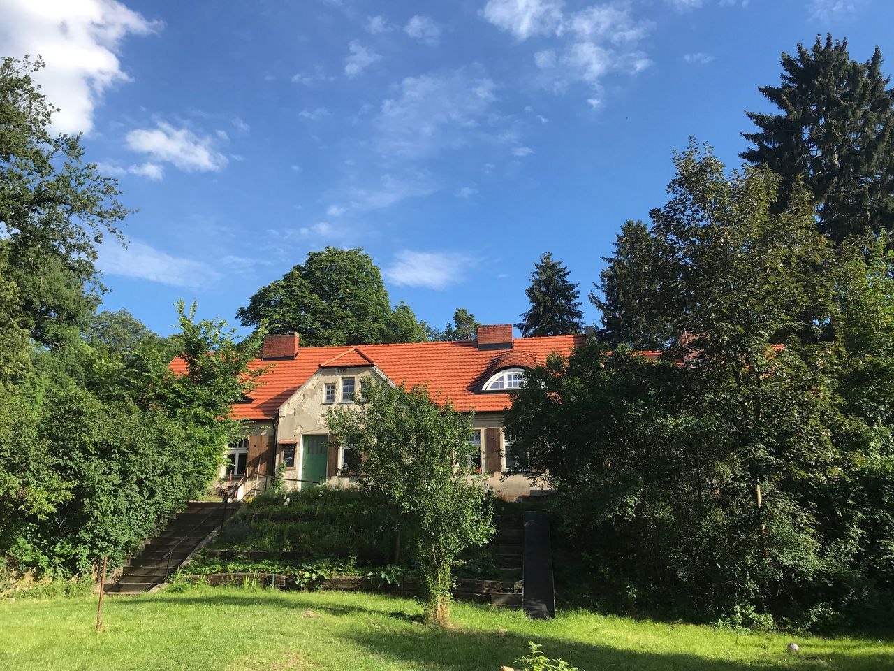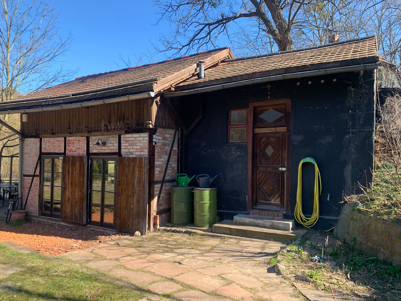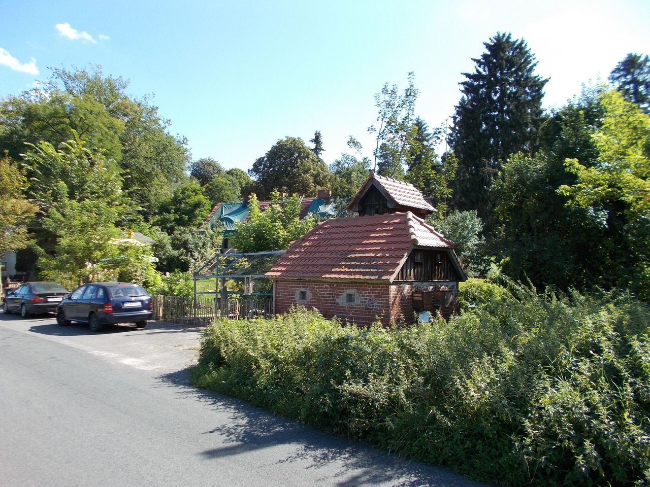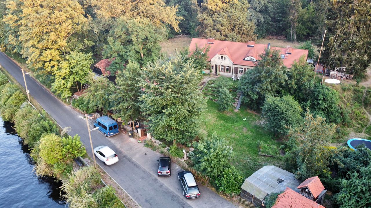 Neben dem Haupthaus sind mehrere Nebengebäuden wie Schuppen, Hühnerstall und Häuschen vorhanden. Es sind mehrere freie Parkplätze auf der Strasse vorhanden. Eine Treppe von der Strasse oder ein befahrbaren Waldweg führt nach oben zum Haus. Das Kremnitzufer ist eine Sackgasse. Am Ende ist ggf. Platz für ein Basecamp beim Bogenschützenverein, Strom ist überall vorhanden, im Keller befindet sich ein 16A Anschluss.