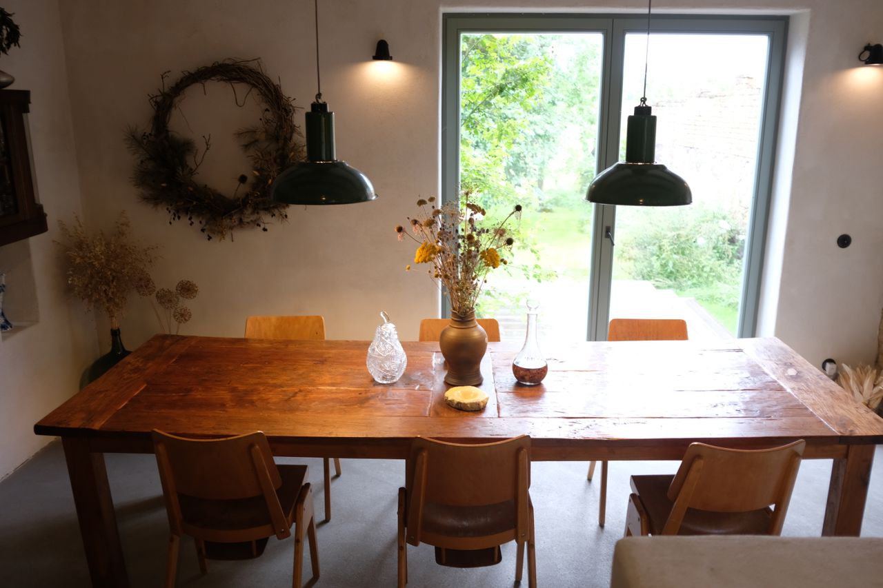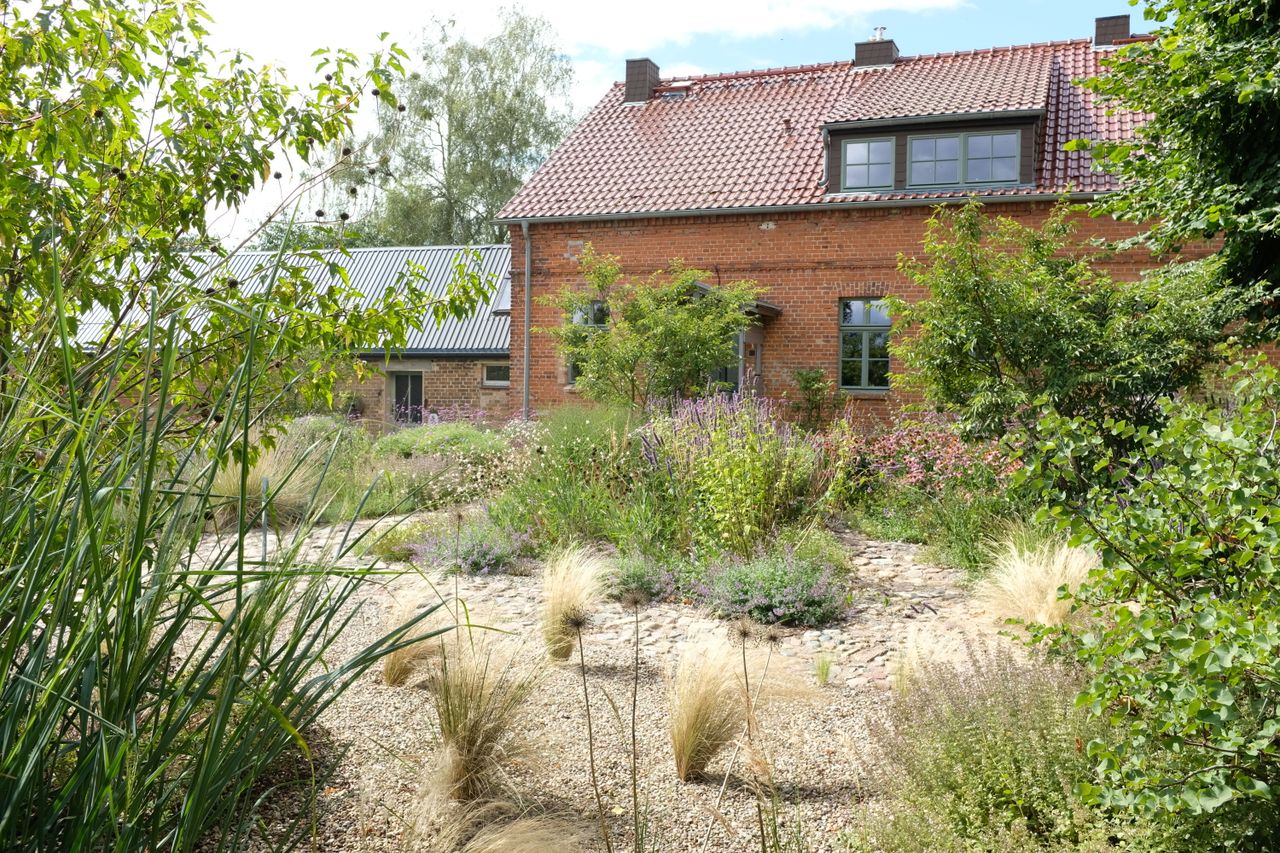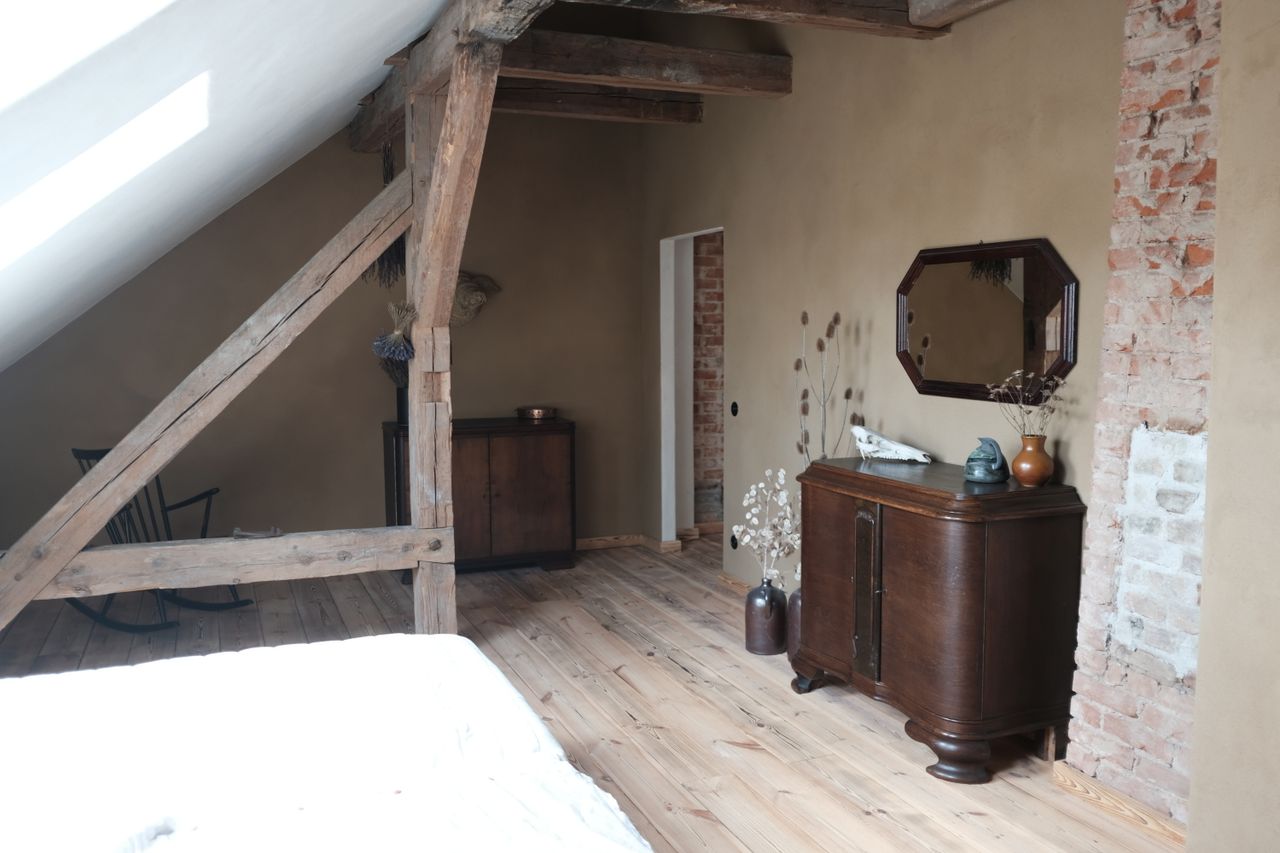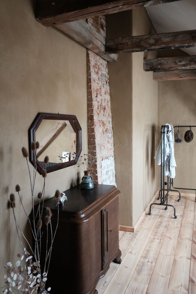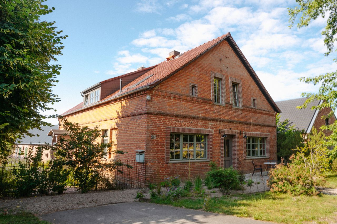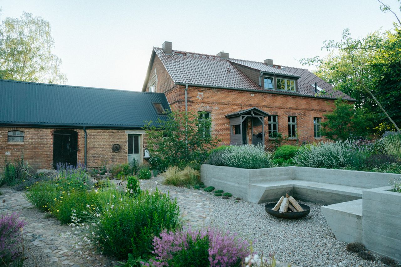 Altes, grosses 240qm Backsteinhaus mitten in der wunderschönen, hügeligen Landschaft der Uckermark gelegen. Das Haus wurde liebevoll saniert und alte Elemente hervorgehoben, z.B. Geschoss- und Dachbalken. Die Wände sind mit Lehm und Kalk verputzt, die Inneneinrichtung rustikal bis industriell. Betonböden, Zieglsteinwände, Dielenböden, alte Fliesen vorhanden. Im EG eine Deckenhöhe von etwa 2.8m, im Obergeschoss bis zu 4.5m je nach Raum. Zu dem Haus gehört ein ca 7500qm grosses Grundstück (Weidewiese mit Schafen und weitem Blick auf die Hügel) sowie ein sehr grosszügig angelegter mediteraner Garten (ca 800qm) voller Stauden, Lavendel und Gräser was dem Hof ein Toskana Feeling gibt. Der Garten besteht zudem aus Feldsteinwegen und einer im Kontrast angelegten Betonterrassierung und Sitzecke. Im Hinteren Bereich des Grundstücks befind sich ein Selbstversorgergarten voller Hochbeete sowie ein Sitzbereich, alter Fruchtbaumbestand und Hängematten. Der alte unausgebaute Stall bietet weitere interessante Motive. Es befinden sich in unmittelbarer Nähe 3 Seen sowie viele Felder, Wiesen und Wälder.