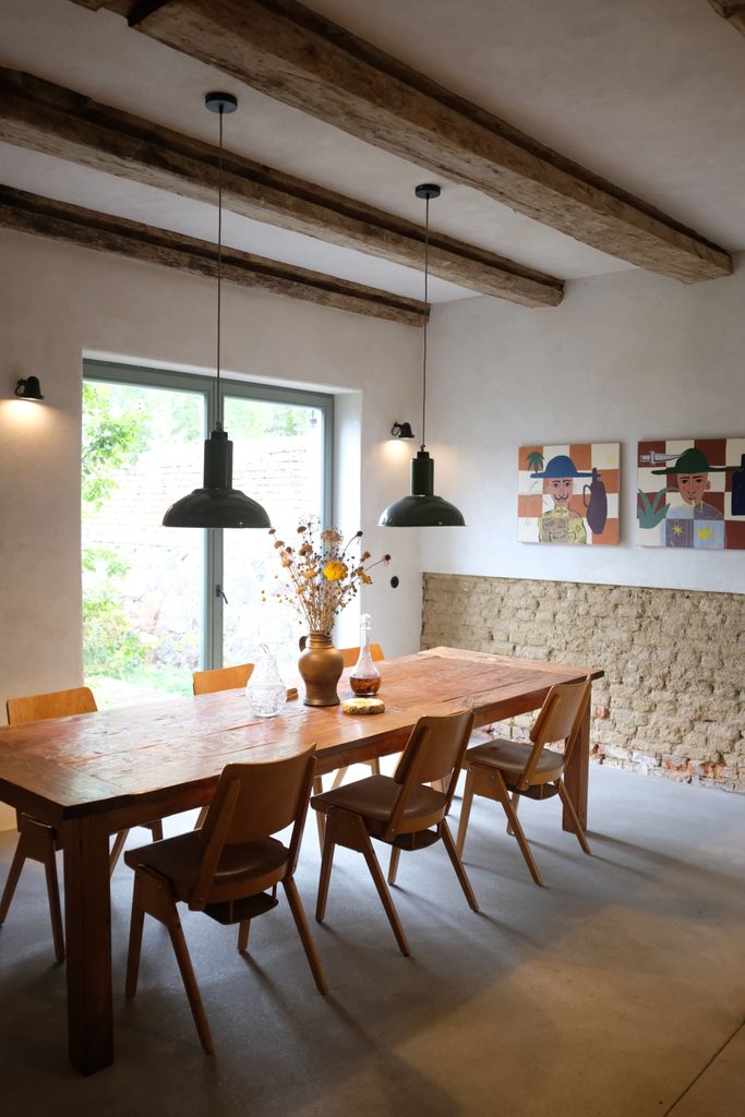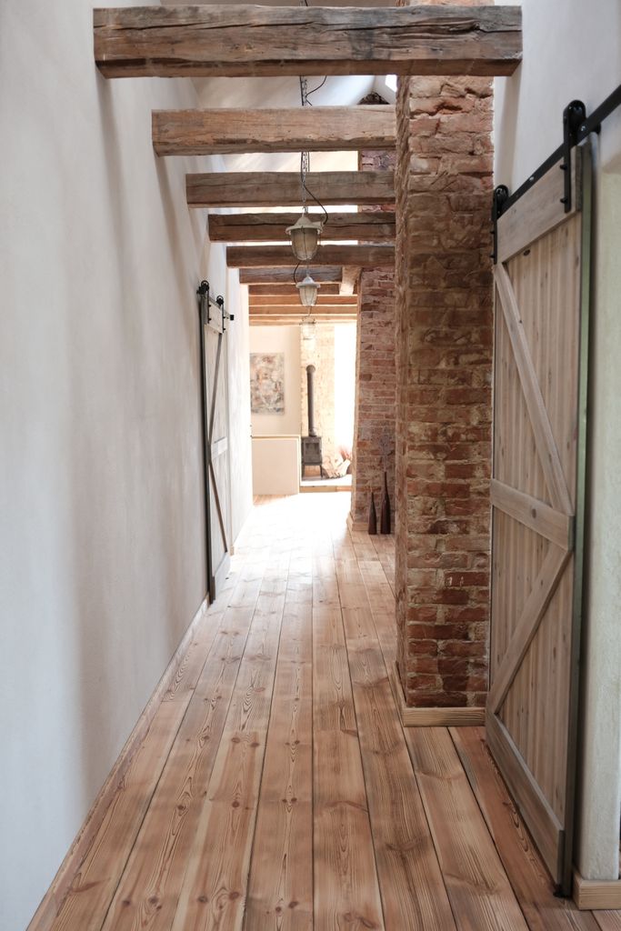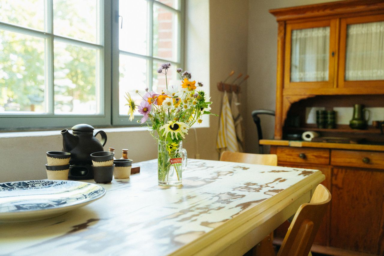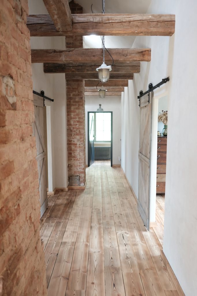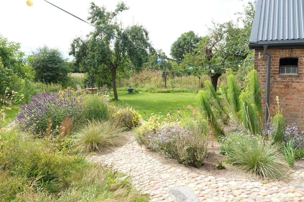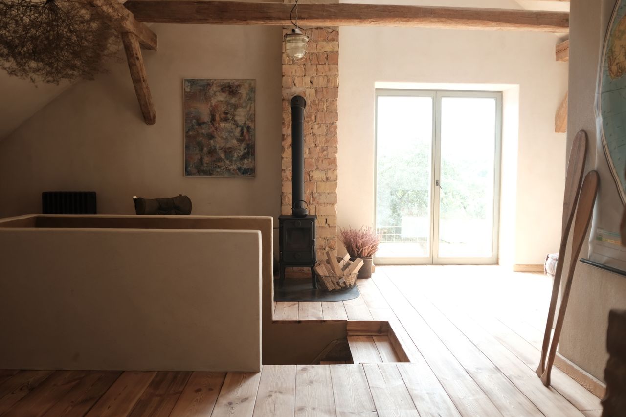 Altes, grosses 240qm Backsteinhaus mitten in der wunderschönen, hügeligen Landschaft der Uckermark gelegen. Das Haus wurde liebevoll saniert und alte Elemente hervorgehoben, z.B. Geschoss- und Dachbalken. Die Wände sind mit Lehm und Kalk verputzt, die Inneneinrichtung rustikal bis industriell. Betonböden, Zieglsteinwände, Dielenböden, alte Fliesen vorhanden. Im EG eine Deckenhöhe von etwa 2.8m, im Obergeschoss bis zu 4.5m je nach Raum. Zu dem Haus gehört ein ca 7500qm grosses Grundstück (Weidewiese mit Schafen und weitem Blick auf die Hügel) sowie ein sehr grosszügig angelegter mediteraner Garten (ca 800qm) voller Stauden, Lavendel und Gräser was dem Hof ein Toskana Feeling gibt. Der Garten besteht zudem aus Feldsteinwegen und einer im Kontrast angelegten Betonterrassierung und Sitzecke. Im Hinteren Bereich des Grundstücks befind sich ein Selbstversorgergarten voller Hochbeete sowie ein Sitzbereich, alter Fruchtbaumbestand und Hängematten. Der alte unausgebaute Stall bietet weitere interessante Motive. Es befinden sich in unmittelbarer Nähe 3 Seen sowie viele Felder, Wiesen und Wälder.