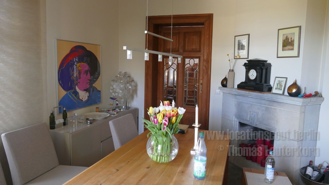 Die Inneneinrichtung ist modern gewählt, wobei viele historische Bauelemente erhalten geblieben sind. So zum Beispiel ein offener Sandsteinkamin, Holzparkett bzw. Dielen, historische Fußbodenfließen im Wintergarten, Holztüren mit geschliffenem Glas und vereinzelte Buntglasfester.