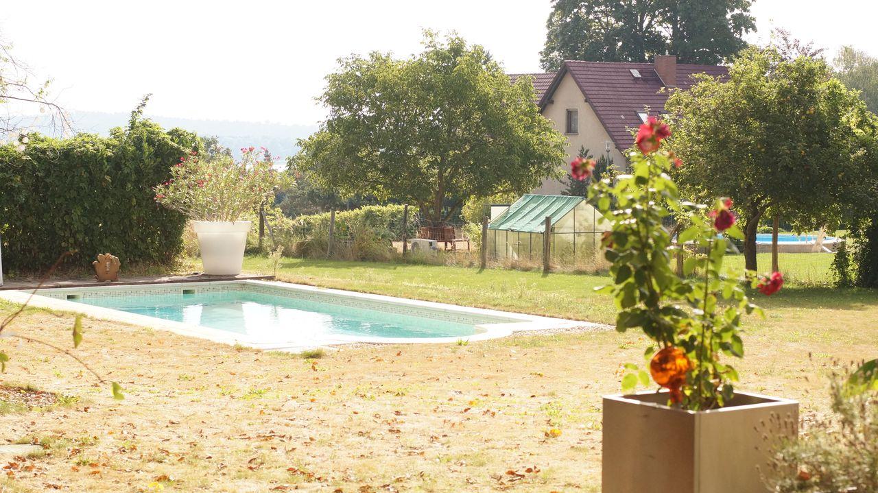 Im Garten befindet sich ein separates Ferienhaus mit Jacuzzi und großzügigem Pool.