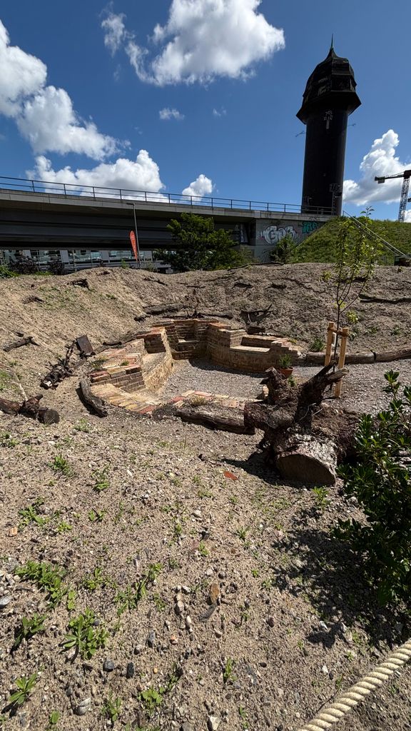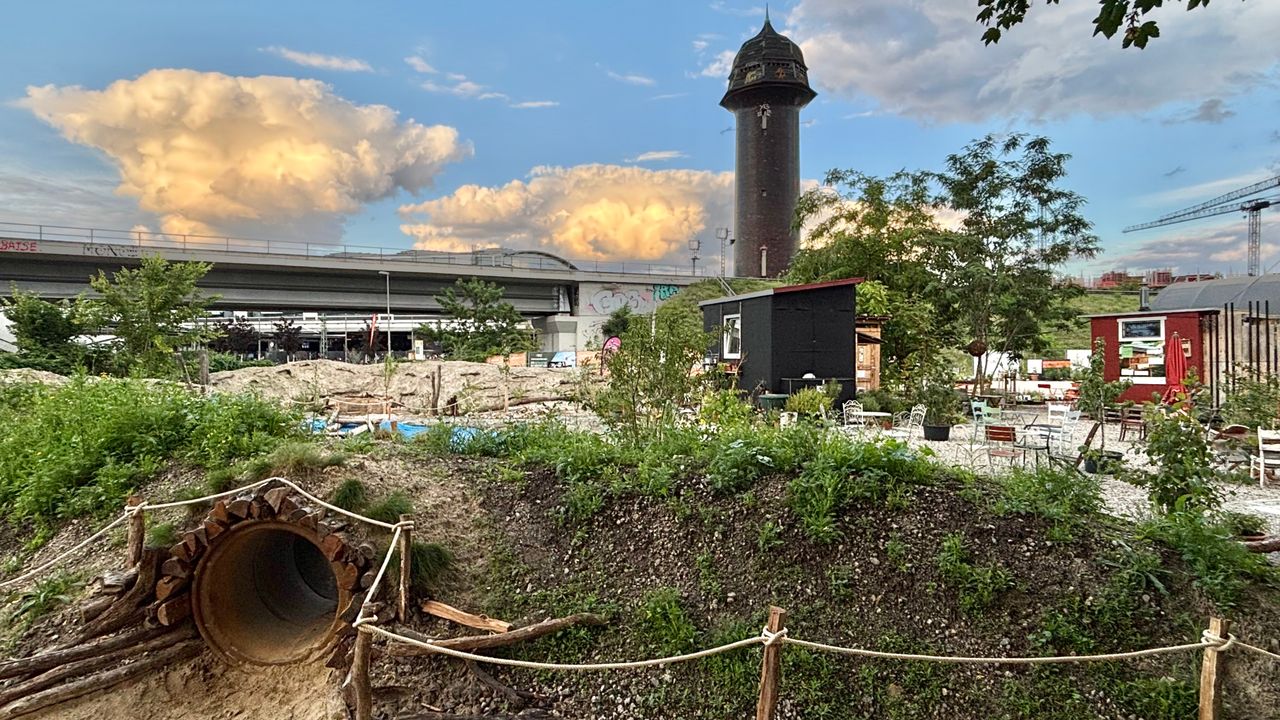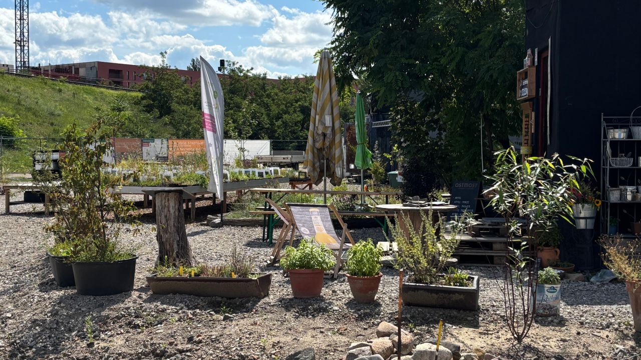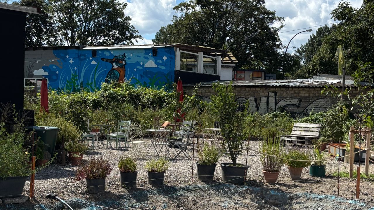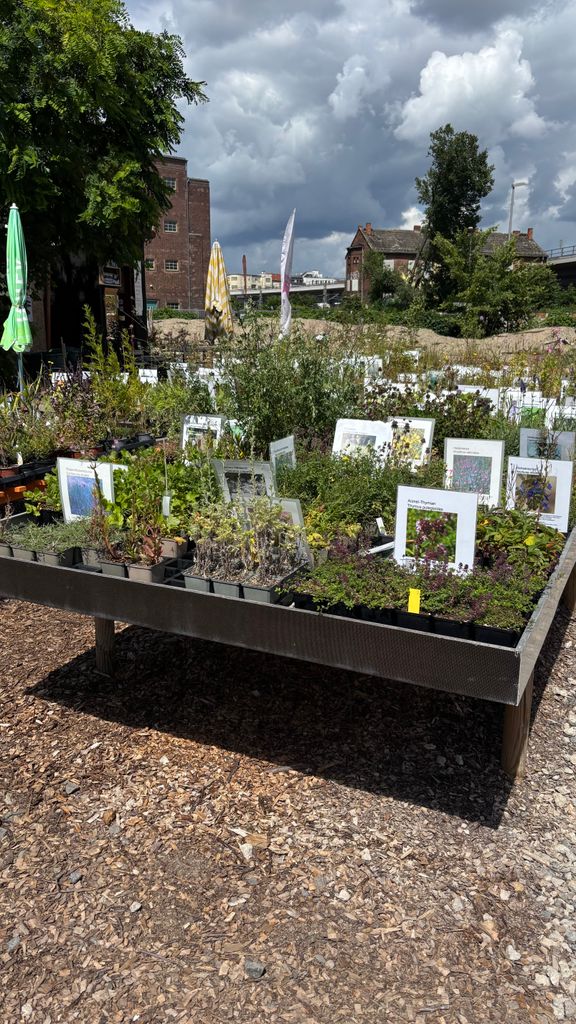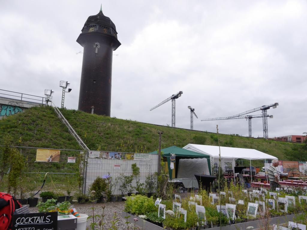 Direkt neben dem Wasserturm am Bahnhof Ostkreuz befindet sich unsere Lebendige Stadtgärtnerei mit einem Naturgarten mit Trockenmauern, Wildstauden und kleinem Teich mit Wasserfall mit Naturgarten-Café, Gärtnerei mit Verkauf von heimischen Wildstauden, Gehölzen, Saatgut und Erden