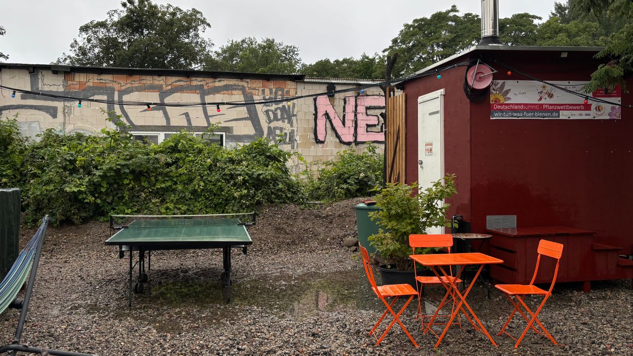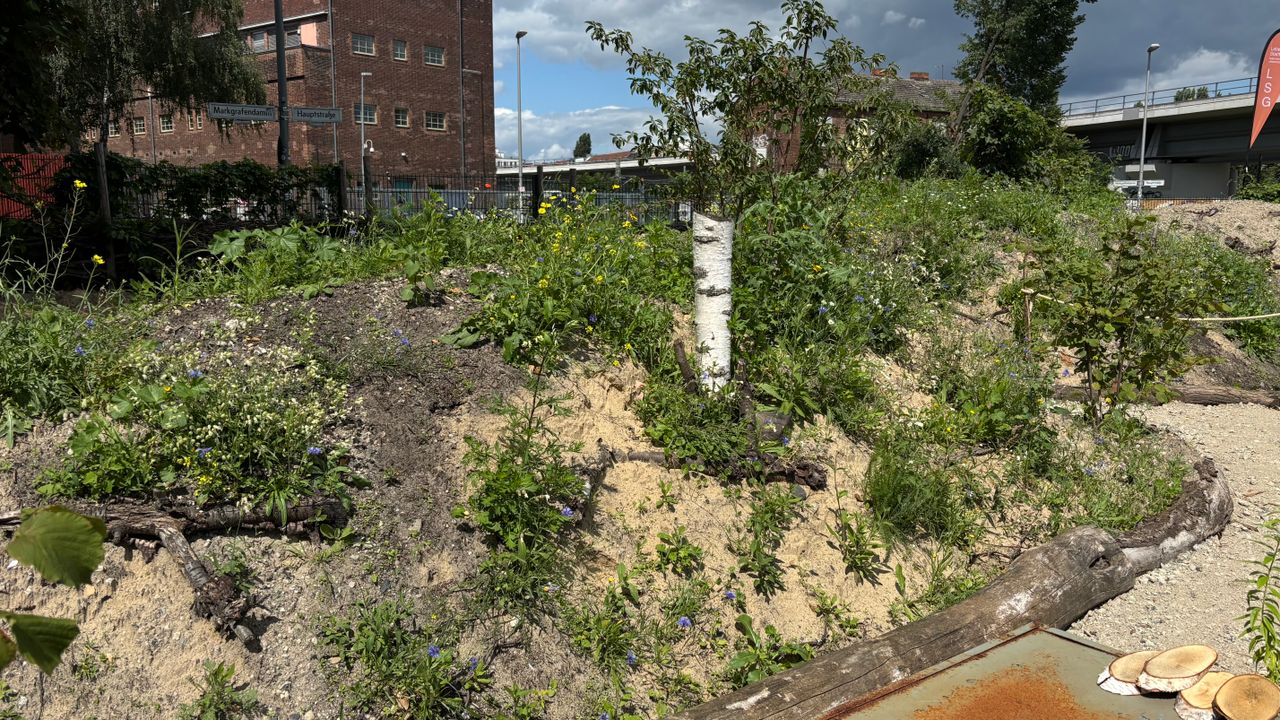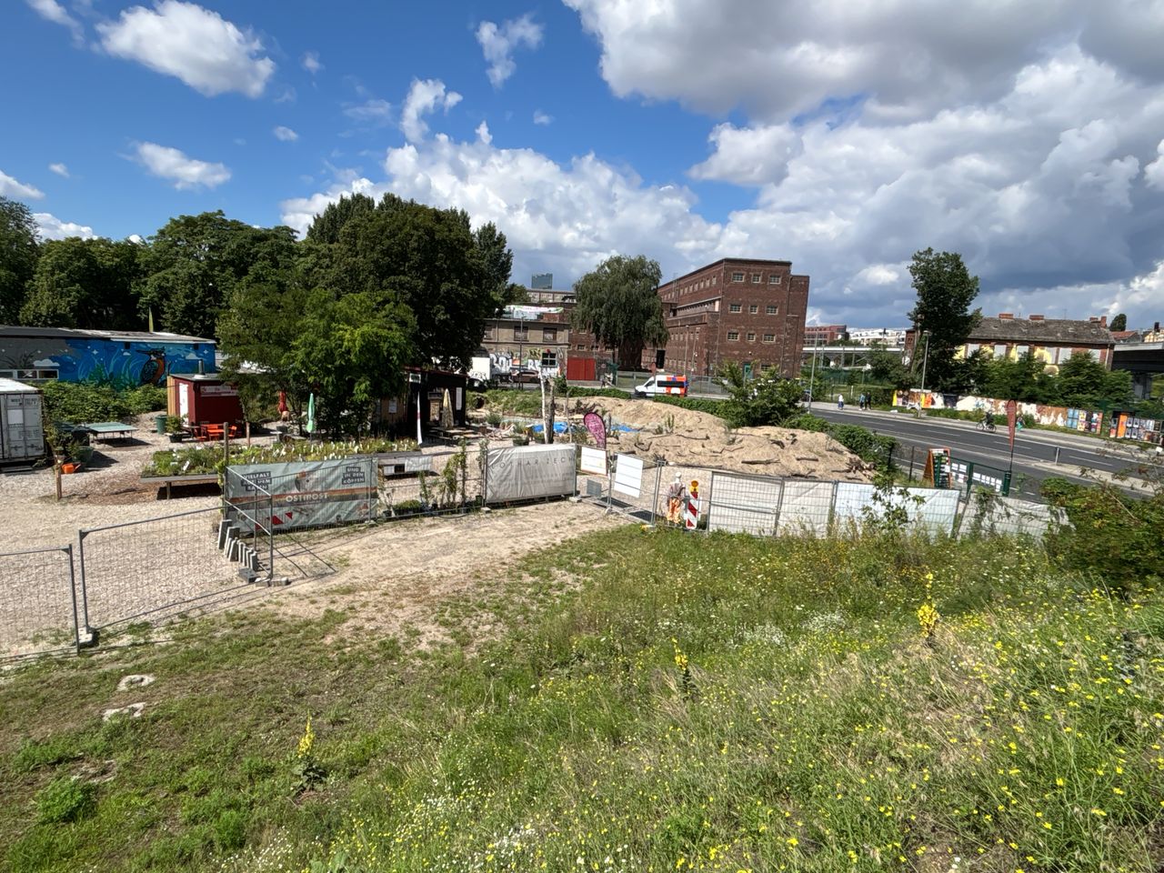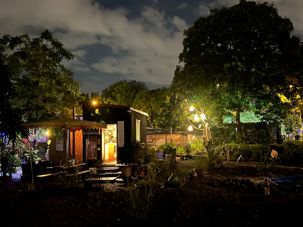 Direkt neben dem Wasserturm am Bahnhof Ostkreuz befindet sich unsere Lebendige Stadtgärtnerei mit einem Naturgarten mit Trockenmauern, Wildstauden und kleinem Teich mit Wasserfall mit Naturgarten-Café, Gärtnerei mit Verkauf von heimischen Wildstauden, Gehölzen, Saatgut und Erden