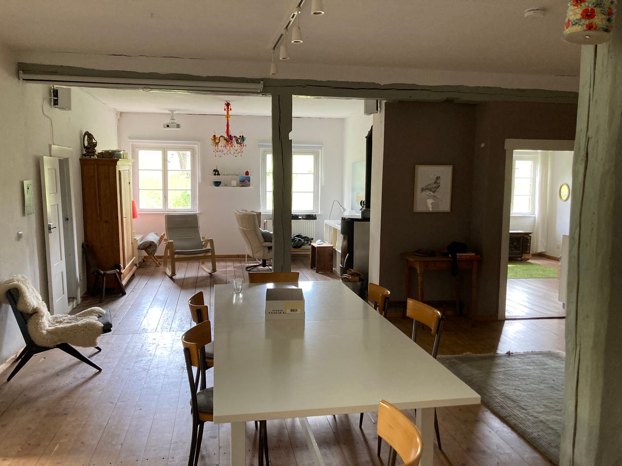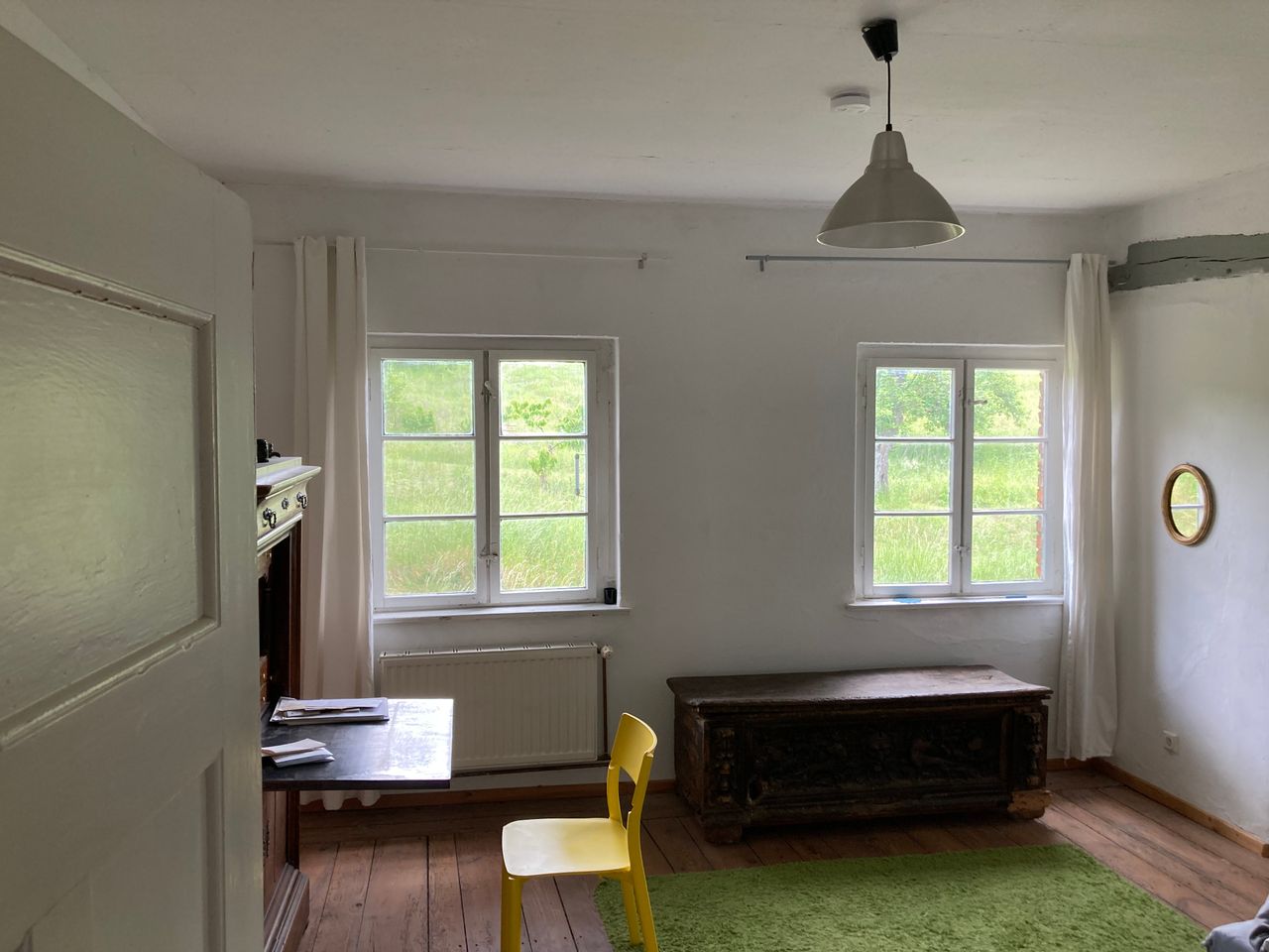 Linde 5 ist der giebelseitige, renovierte Wohnteil einer großen Scheune aus Feldstein, Ziegel und Fachwerk. Umgeben ist das Anwesen im Nationalpark Unteres Odertal von alten Bäumen, Streuobstwiese, Hühnerhof, Garten und Terrassen. Das Erdgeschoß hat bäuerliches Ambiente und das Obergeschoß Loftcharakter und besteht hauptsächlich aus einem großen Raum. Auf beiden Etagen gibt es jeweils eine Küche, Bad und Toilette. Die angrenzende mächtige Feldsteinscheune und der leere Dachboden stehen für Dreharbeiten zur Verfügung. Durch alle Fenster kann Licht gesetzt werden. In den Hang gebaut ist das Obergeschoß auch ebenerdig zu erreichen.