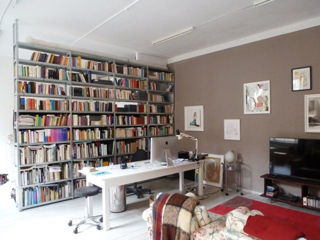 300 qm Loft-Etage, großzügige Aufteilung: Wohnung mit großer Bibliothek ( 3 x 4 m), Wohnung, Küche und Officebereich gehen ineinander über, Lastenaufzug fährt direkt in die Wohnung, riesige Küche individuell gestaltet, schöne orientalische Fliesen, viel Platz, riesige Fenster (20er Jahre), hell,