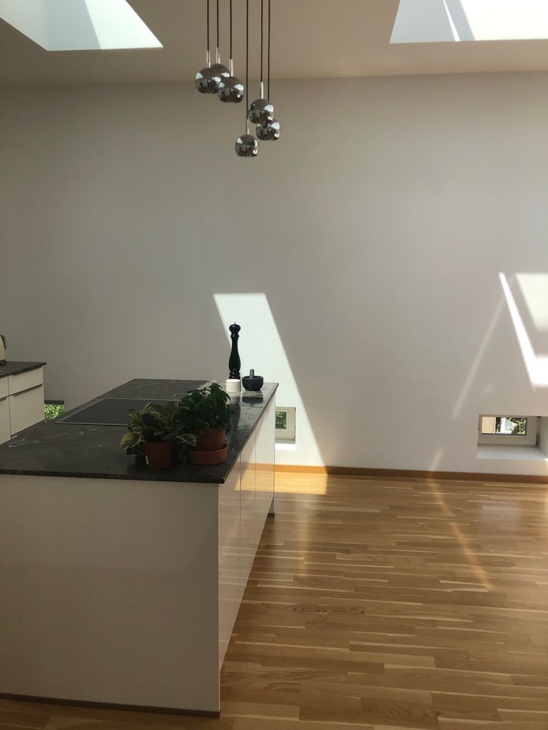 The first direction this loft apartment takes your eyes is up – to the impressive XL ceiling skylights that flood the entire space with natural light and make it a great stage for shadow play. With an almost all white interior – it certainly has the Scandinavian stamp of approval, proving to be a great location for shoots requiring modern, bright and clean interiors.