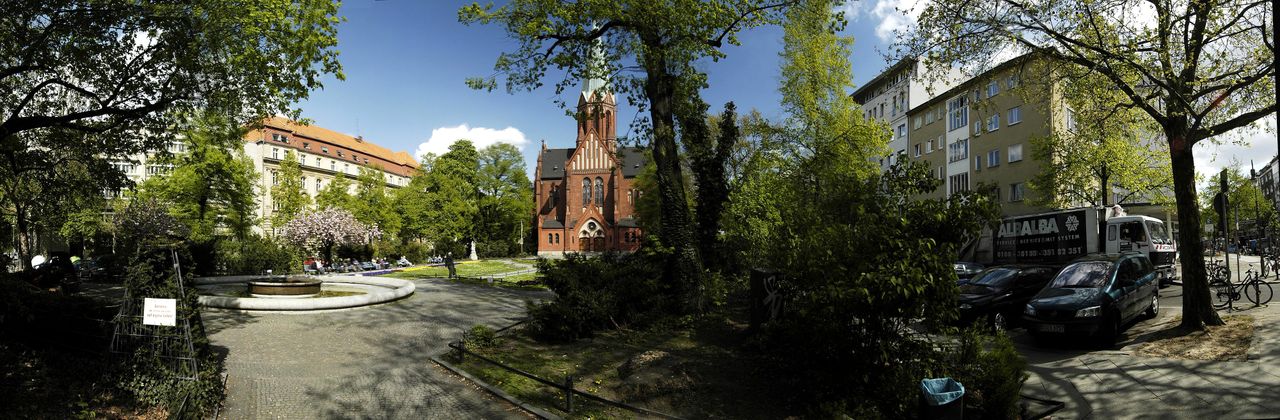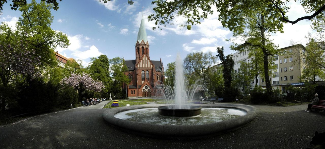 Ruhiger kaum befahrener Platz mit einer kleinen Grünfläche, sowie einer Kirche. Der Platz ist hauptsächlich umgeben von Wohnhäusern aus der Gründerzeit, in deren Erdgeschossen sich kleine Fachgeschäfte angesiedelt haben.