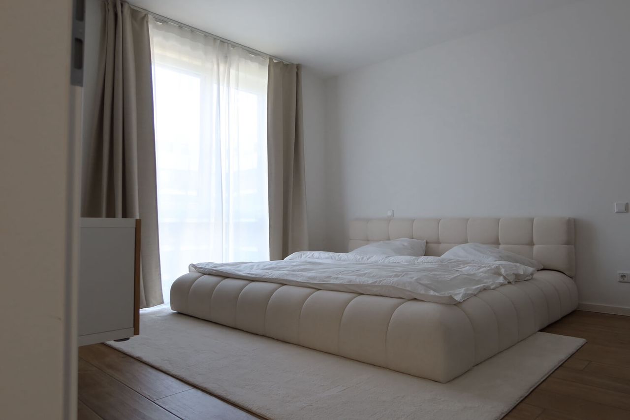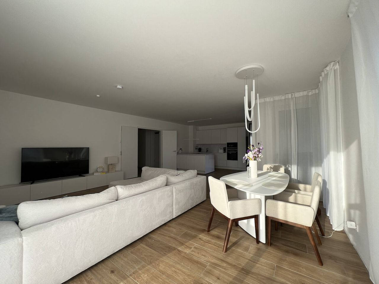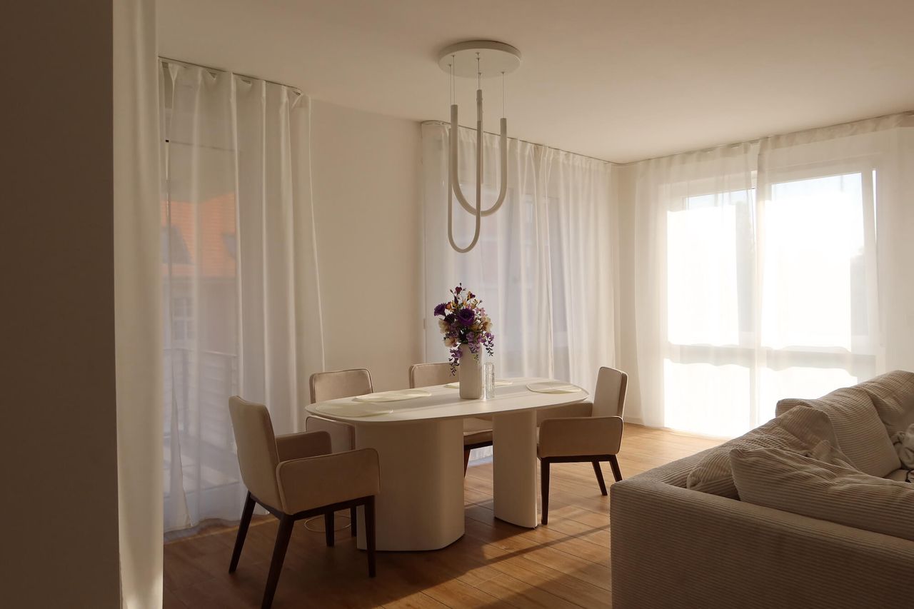 A vibrant apartment flooded with natural light, showcasing modern and stylish white furniture. The perfect fusion of brightness and timeless elegance, will act as a beautiful clean backdrop for your productions. Please click "Message Home Studio" at the link below to contact owner directly: homemadestudio.com