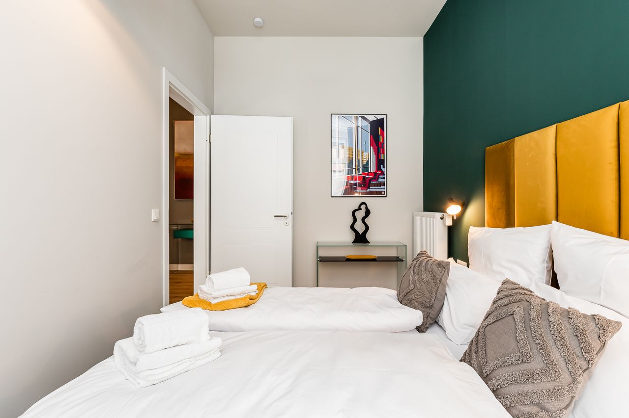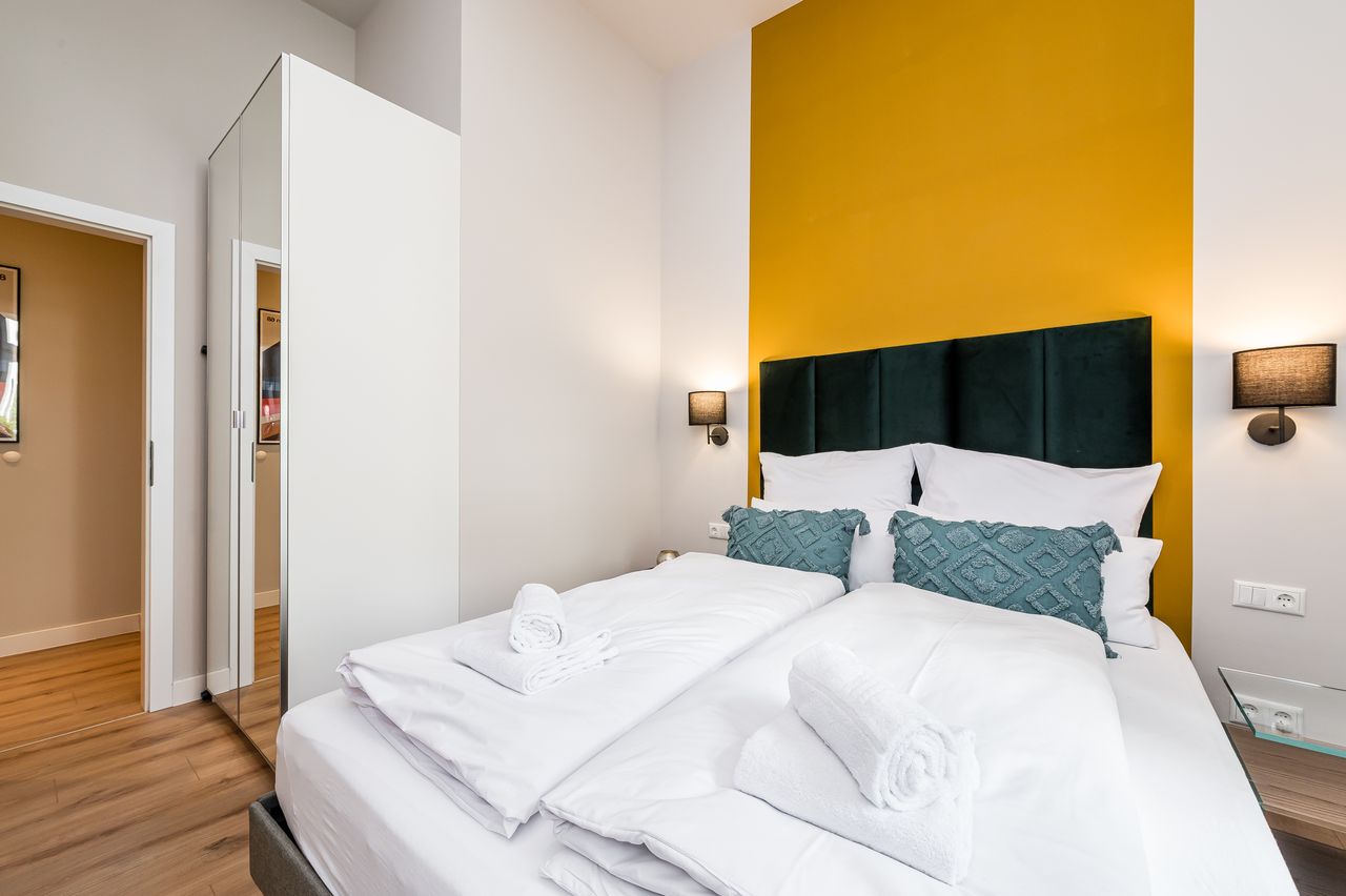 Luxuriös und modern eingerichtete Apartment verfügt über 3 Schlafzimmer mit Doppelbetten, voll ausgestattete Küche, Badezimmer mit Dusche, separates WC und High-Speed Internet und bietet bequem Platz für bis zu 6 Personen.