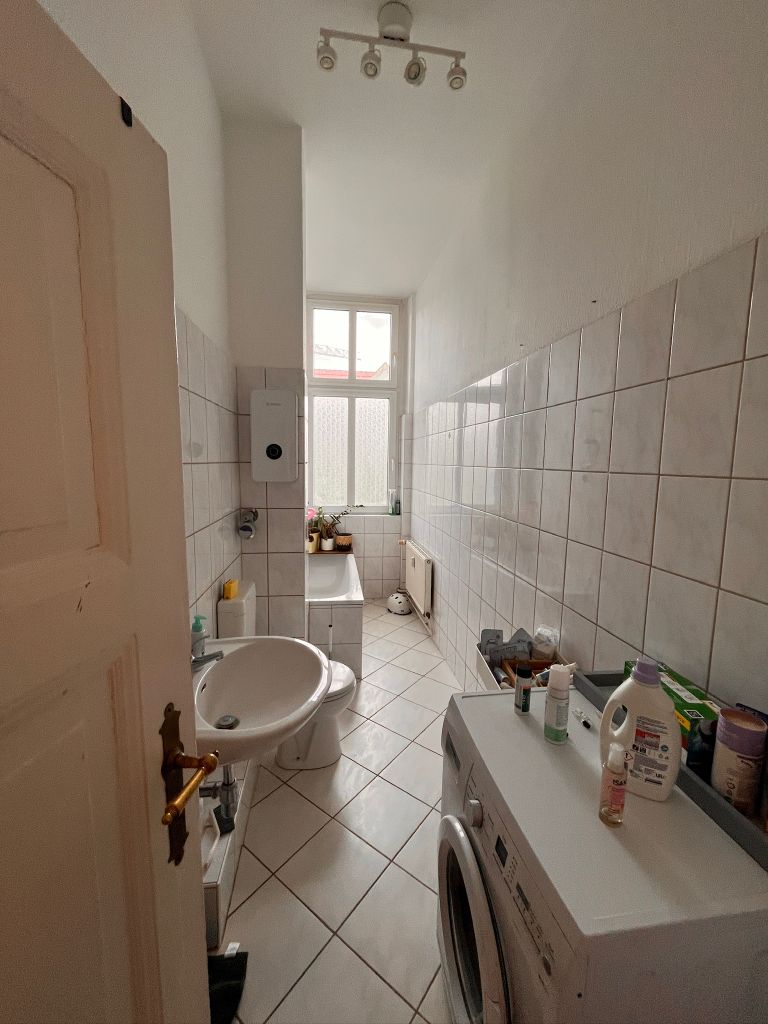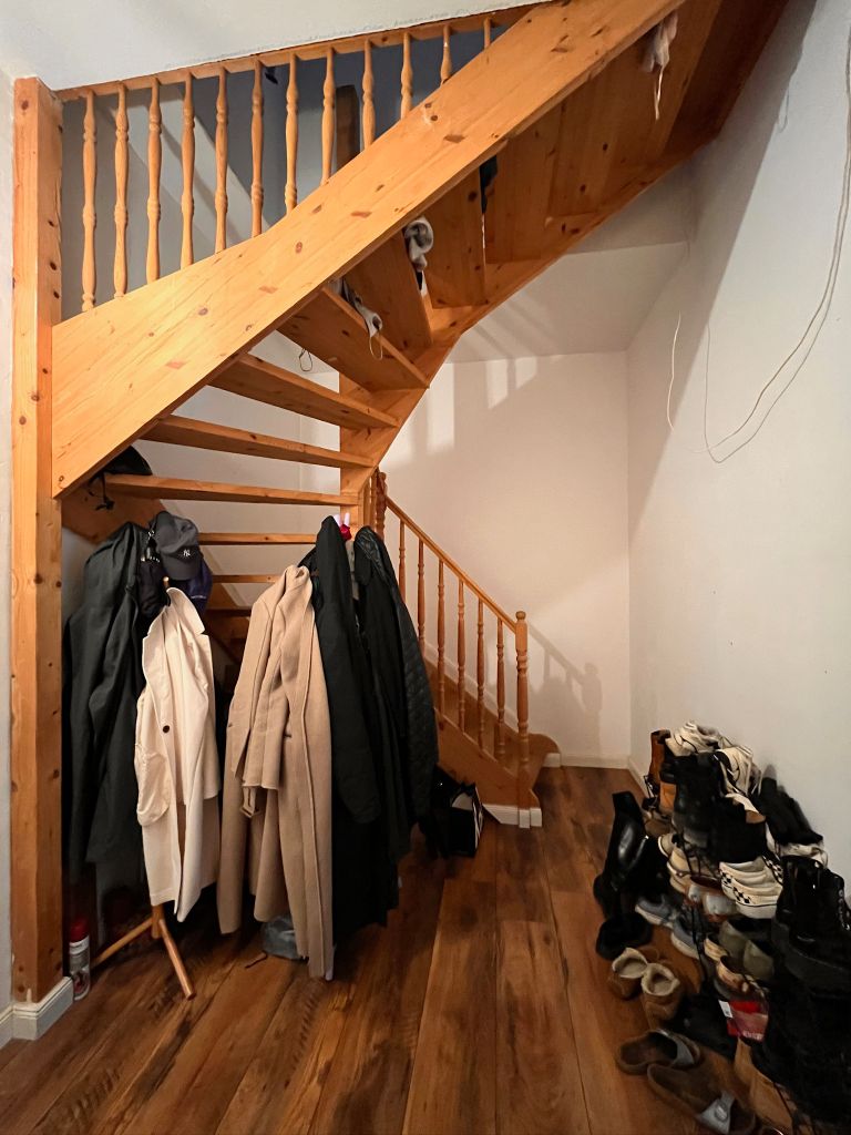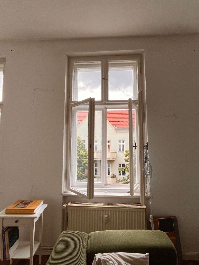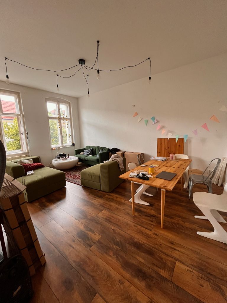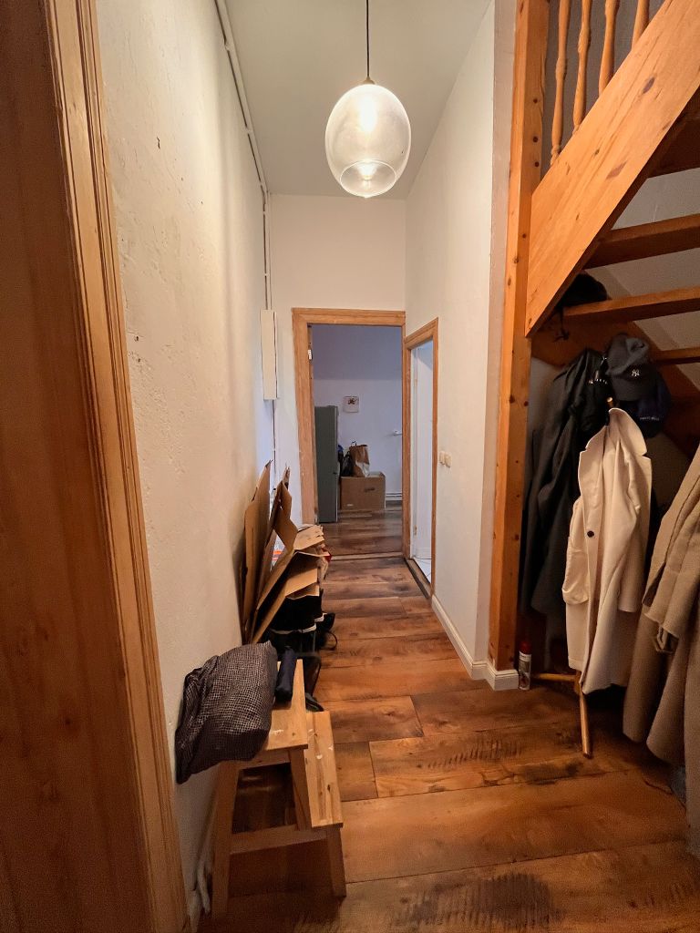 Wir vermieten im Zeitraum 15.07 - 30.08 unsere unmöblierte 105qm Maisonete-Altbauwohnung in Berlin-Gesundbrunnen. Bestehend aus einem großen Wohnzimmer mit Balkon, einem Wannenbad mit Tageslichtfenster, einem Duschbad ohne Tageslicht, zwei Schlafzimmen mit Dachluken, einer Küche (ohne Einbauküche) und einem Durchgangszimmer. Eine Holztreppe verbindet den unteren Bereich (Flur, Küche, Wannenbad, Wohnzimmer) mit dem oberen Bereich (Flur, kleines Duschbad, Durchgangszimmer, zwei Schlafzimmer).