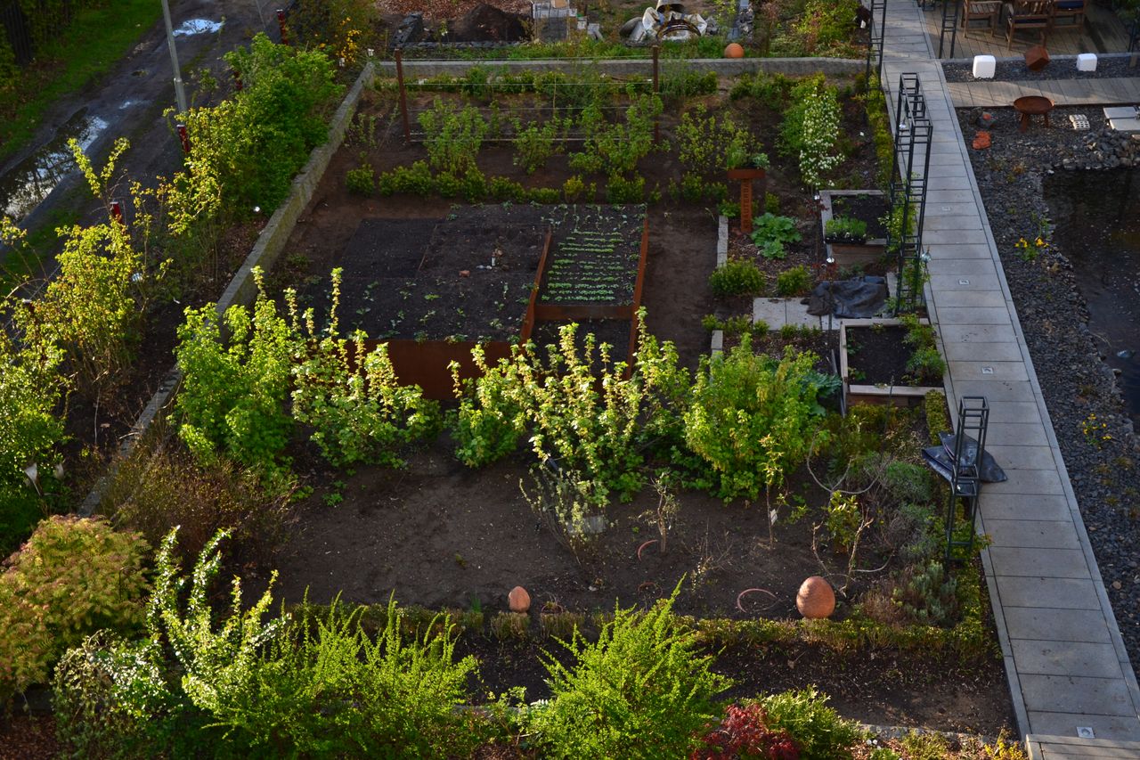 🌱 Senkgarten mit Hochbeeten – Perfekt für Natur- und Gartenaufnahmen, die das Besondere suchen.