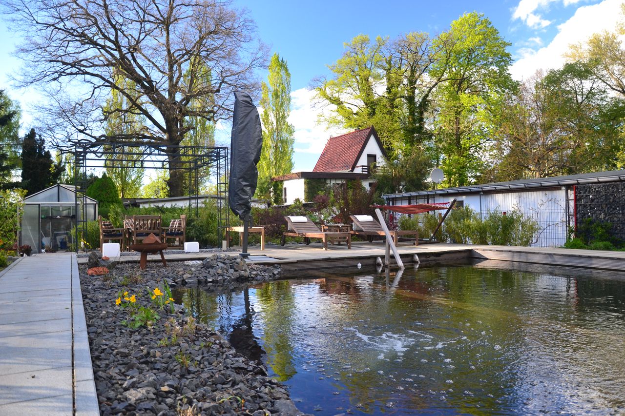 🏊 Schwimmteich mit Terrasse – Eine harmonische Kulisse für entspannte Momente und beeindruckende Aufnahmen.