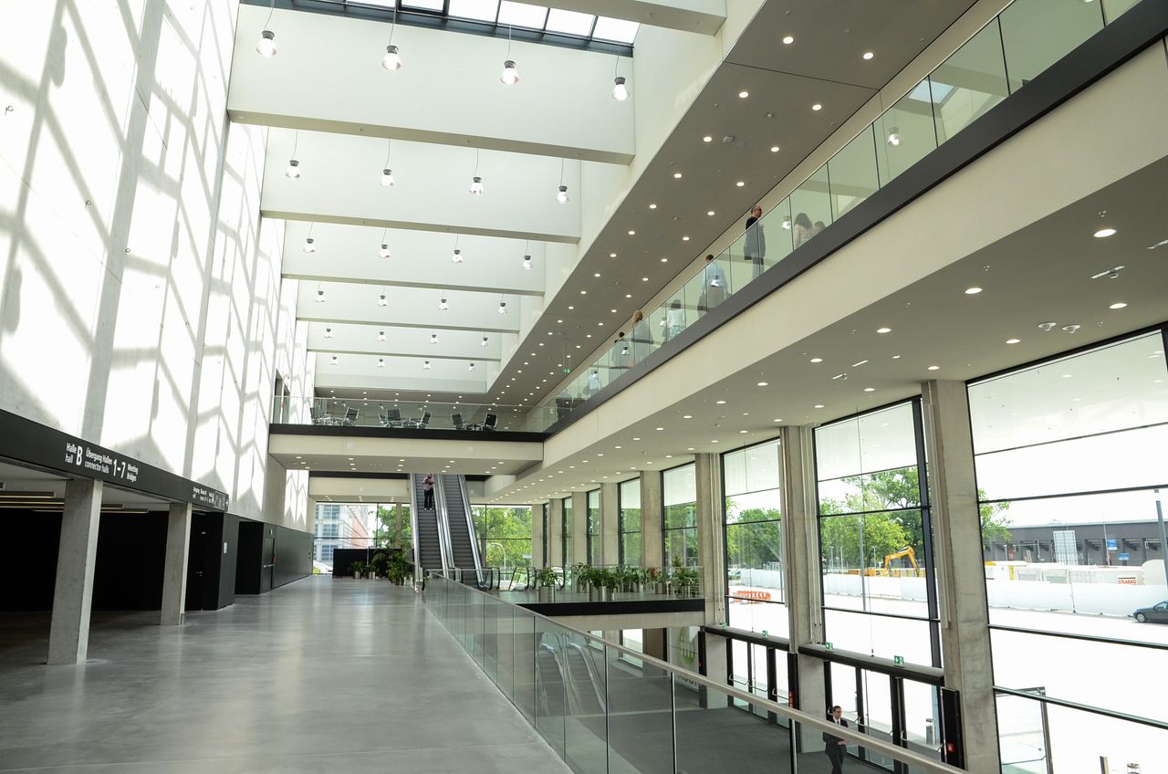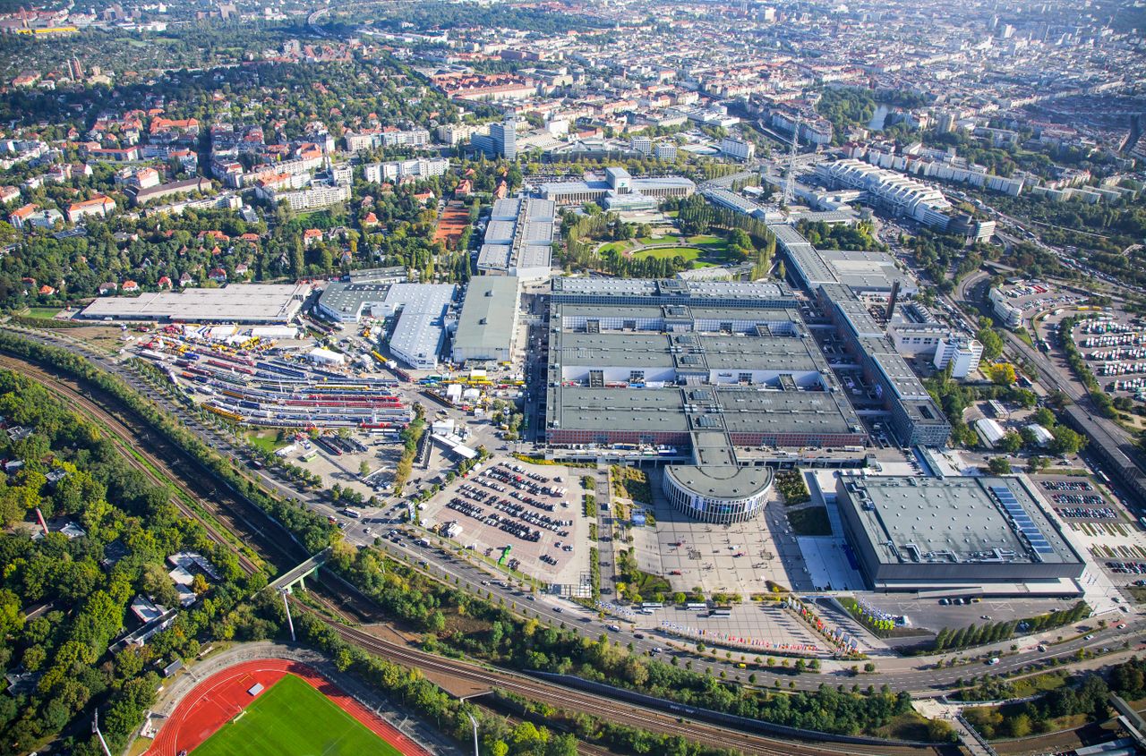 Viel Platz und kurze Wege: 190.000 m² Hallenfläche verteilen sich auf 26 Messehallen + den hub27, den multifunktionalen CityCube Berlin und das einzigartige Palais am Funkturm.
