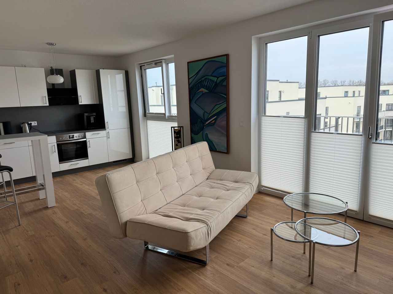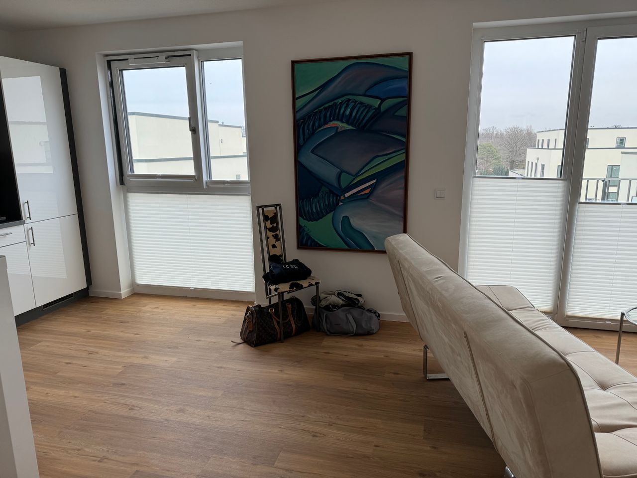 Wundervolle 1Zimmerwohnung mit Küchenzeile , Schlafbereich und Wohnbereich , großes Bad mit Dusche , kleiner Flur und großem Balkon , freier Blick , modern eingerichtet !