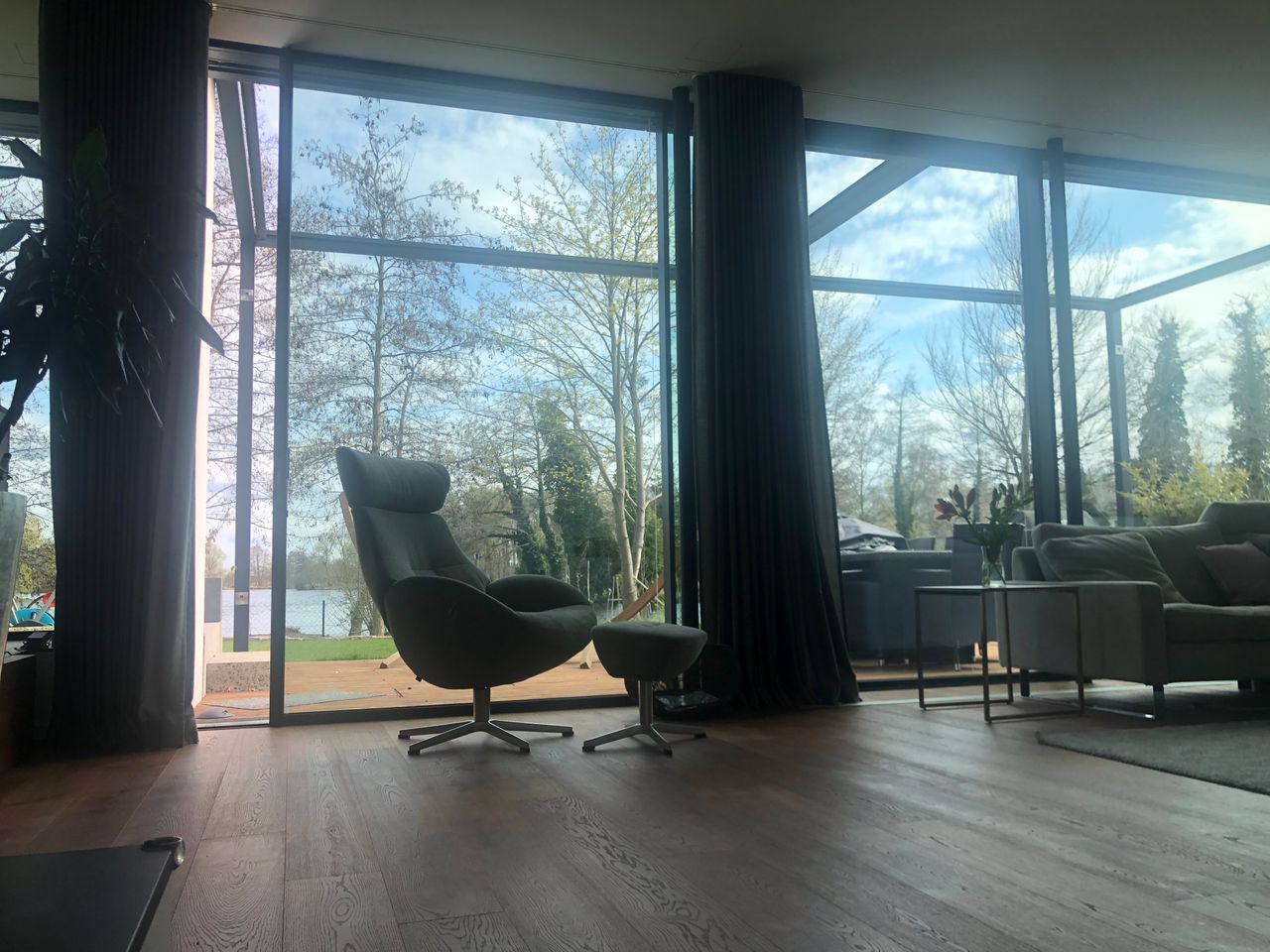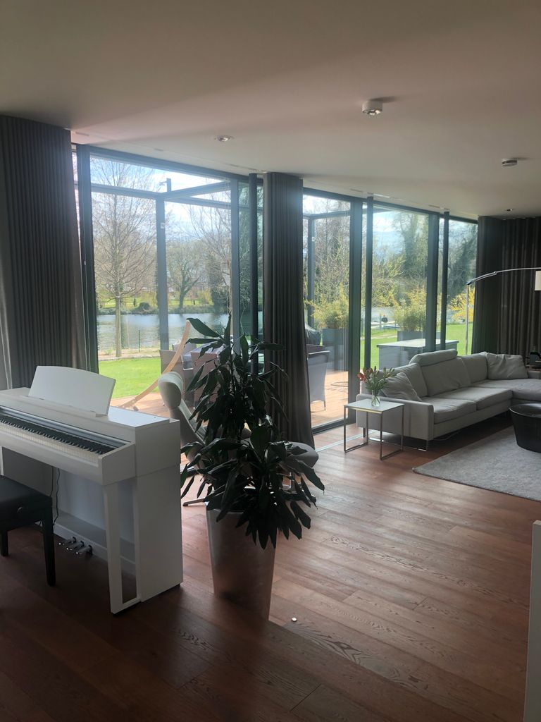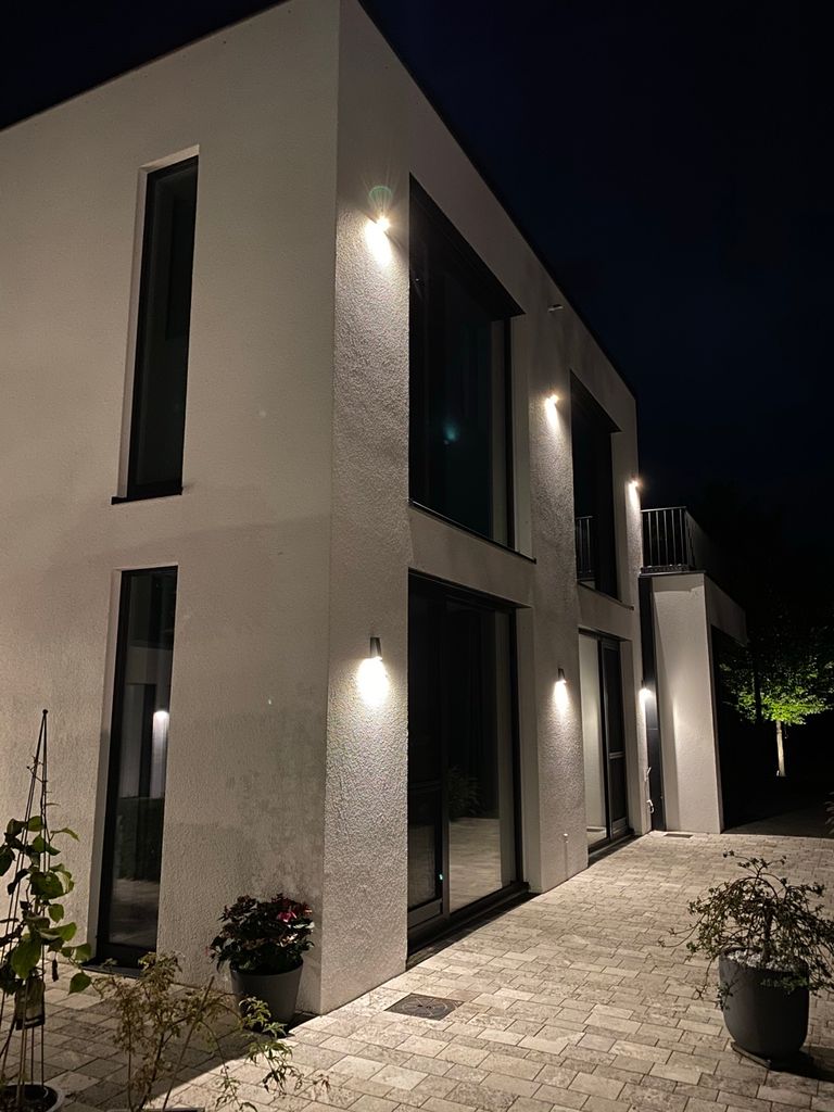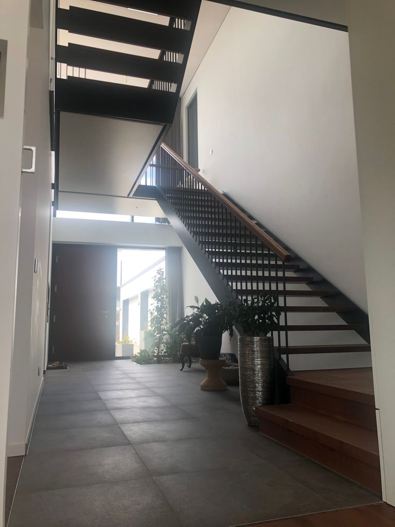 2) Kamin, 3 m langer Esstisch, offene Küche zum Esszimmer und Wohnzimmer, 2 Stufen runter zum Wohnzimmer, große Schiebetüren, große Glasfenster, 40 m2 Dachterrasse, Eichenparkett, große freischwebende Treppe aus Metall, 2 große Panoramafenster (Flur und Schlafzimmer)