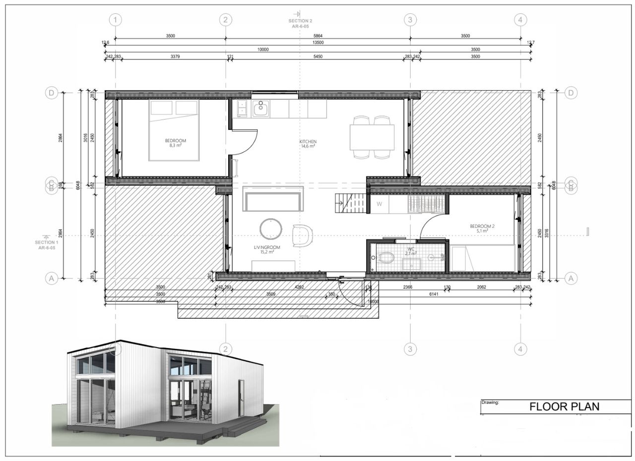 Fläche: 50 m² Wohnfläche (Modulbauweise) plus 20 qm Emporen.
