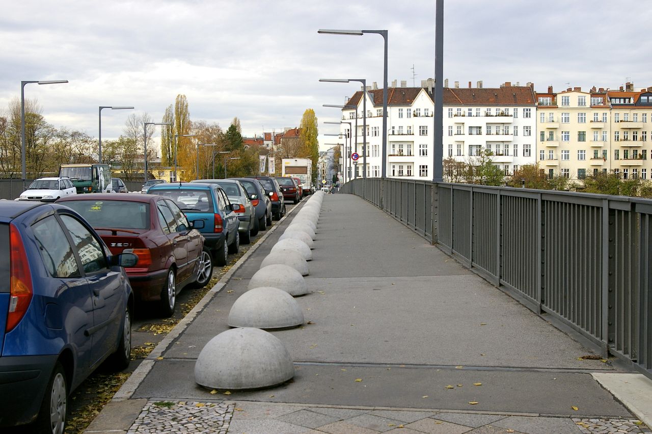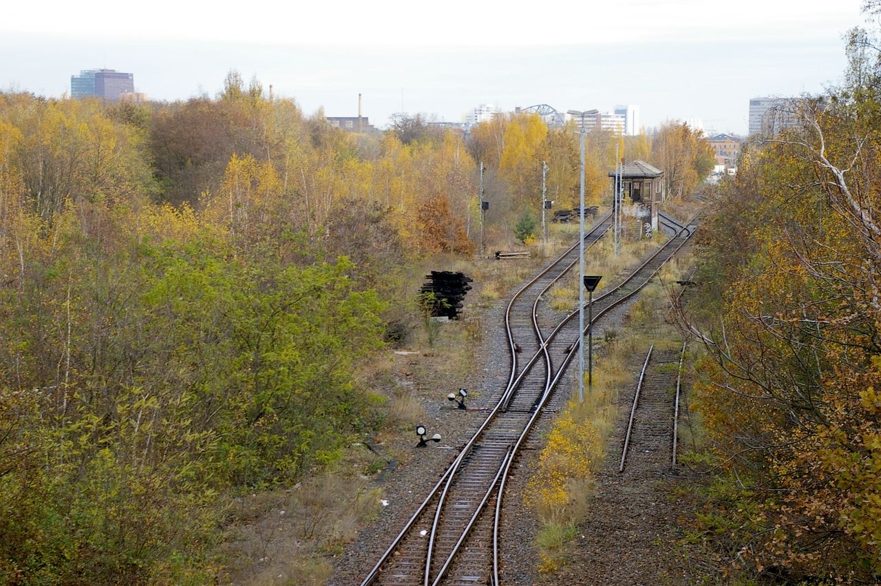 Die Brücke führt über die S-Bahn und Bahntrasse und gewährt einen guten Ausblick auf die Bauten am Potsdamer Platz.