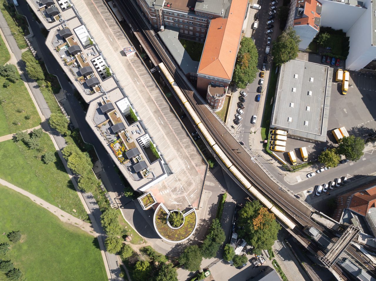 Das oberste Parkdeck unseres Parkhauses am Gleisdreieck bietet eine unvergleichliche Kulisse mit urbanem Charme und einem beeindruckenden Panoramablick über Berlin. In unmittelbarer Nähe fährt eine U-Bahn-Linie auf Sichthöhe vorbei, was zusätzliche dynamische Perspektiven für Ihre Aufnahmen ermöglicht.