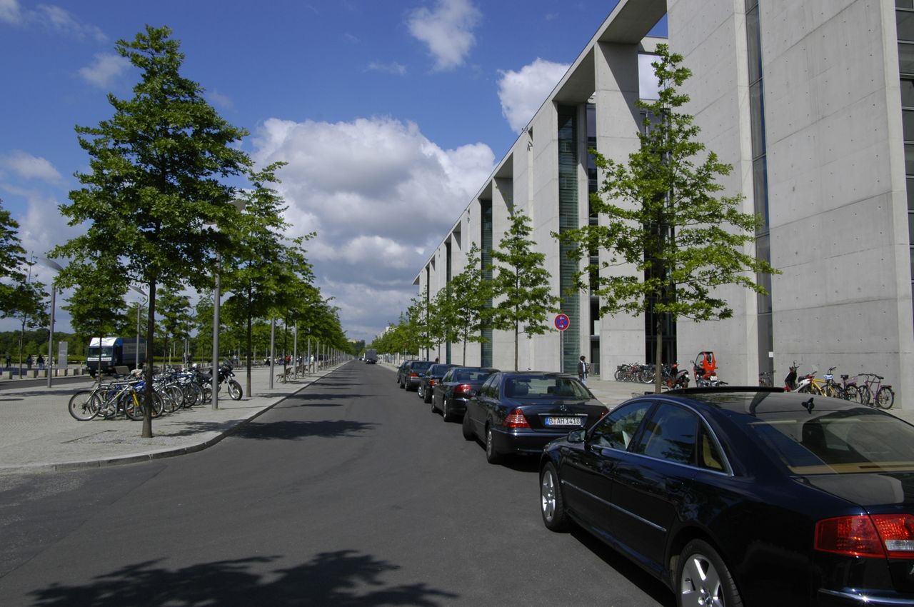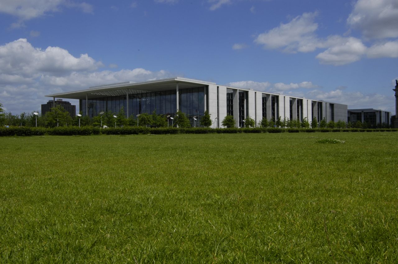 Der im inneren Spreebogen gelegene Parlamentsneubau - benannt nach dem ehemaligen Reichstagspräsidenten Paul Löbe (1924-32) - fügt sich ebenso wie seine bauliche Fortsetzung auf dem nordöstlichen Spreeufer, das Marie-Elisabeth-Lüders-Haus, in das städtebauliche Leitkonzept vom "Band des Bundes" - 1992 konzipiert von den Architekten Axel Schultes und Charlotte Frank.