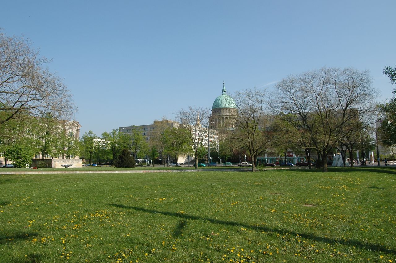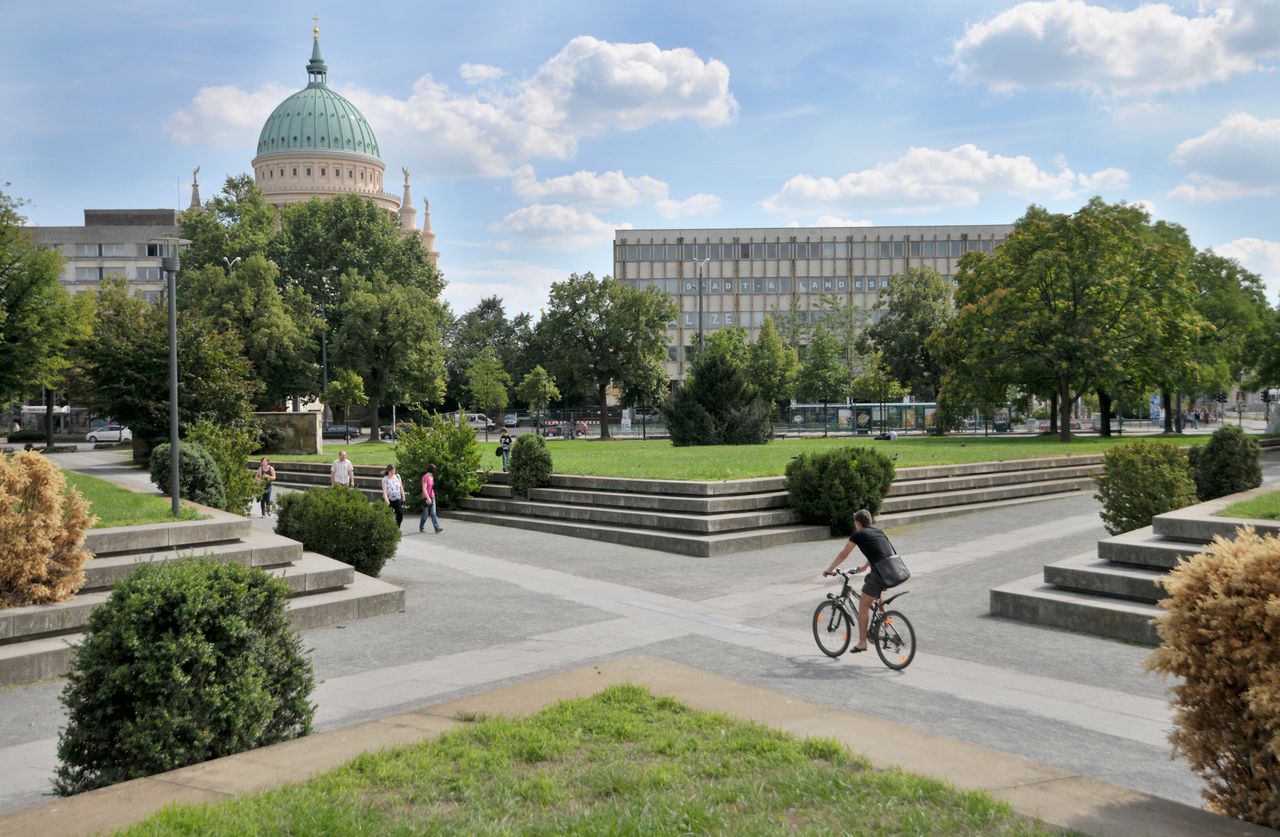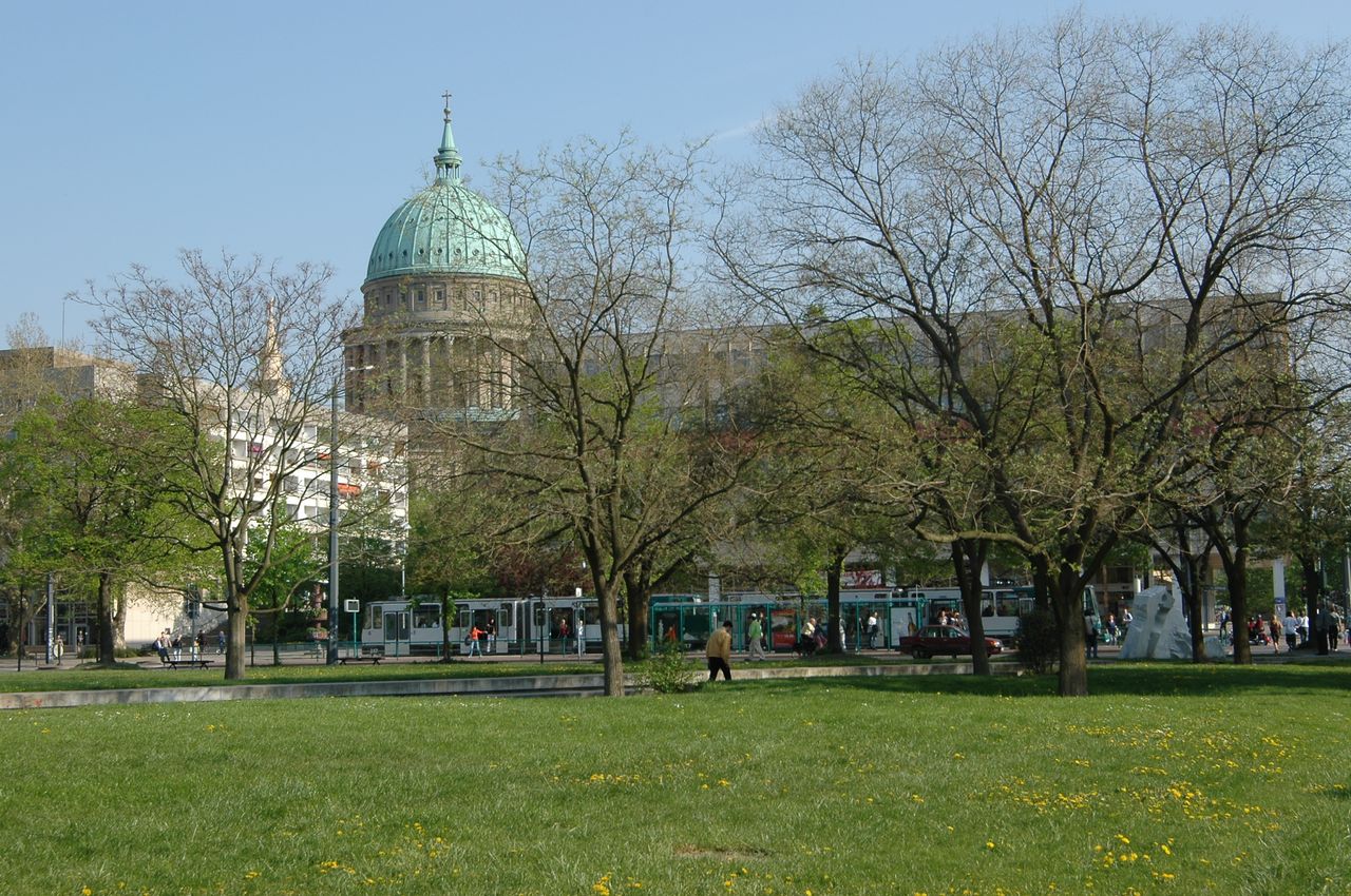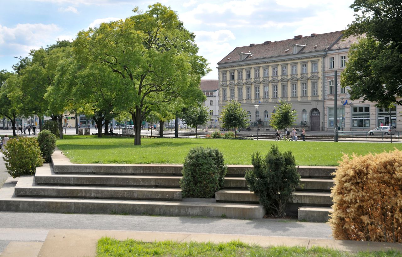Der Platz der Einheit ist einer der Stadtplätze, die im 18. Jahrhundert deshalb entstanden, weil das sehr sumpfige Gelände nicht bebaubar war und damit für die Stadterweiterungen nicht anders genutzt werden konnte. Zu diesen Plätzen zählen noch die sogenannte Plantage, 1850 von Lenné gestaltet, von der heute noch ein kleiner Rest an der Yorckstraße erhalten ist, und der Bassinplatz.