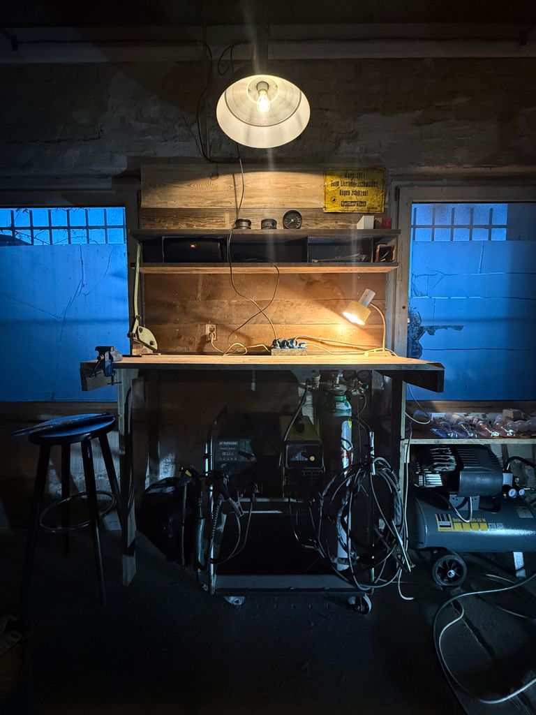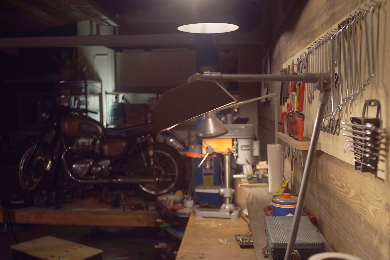 Greasy fingers, sparks flying, sweat and a beer. Stereotypes are easy with this one. The tools are real and the message is solid: This place is about bringing machines back to life that used to win races.
