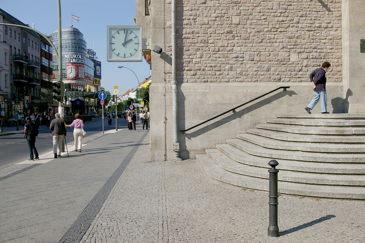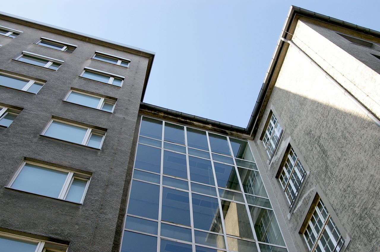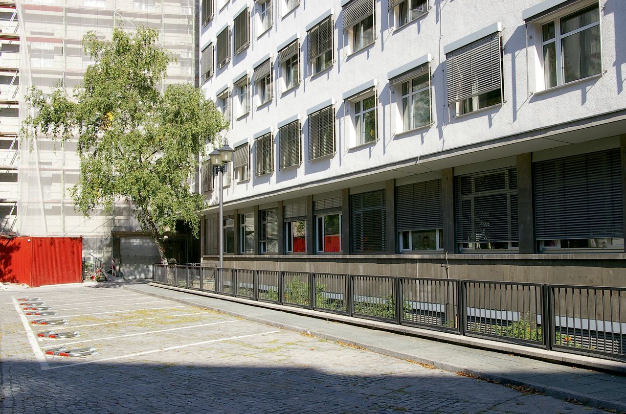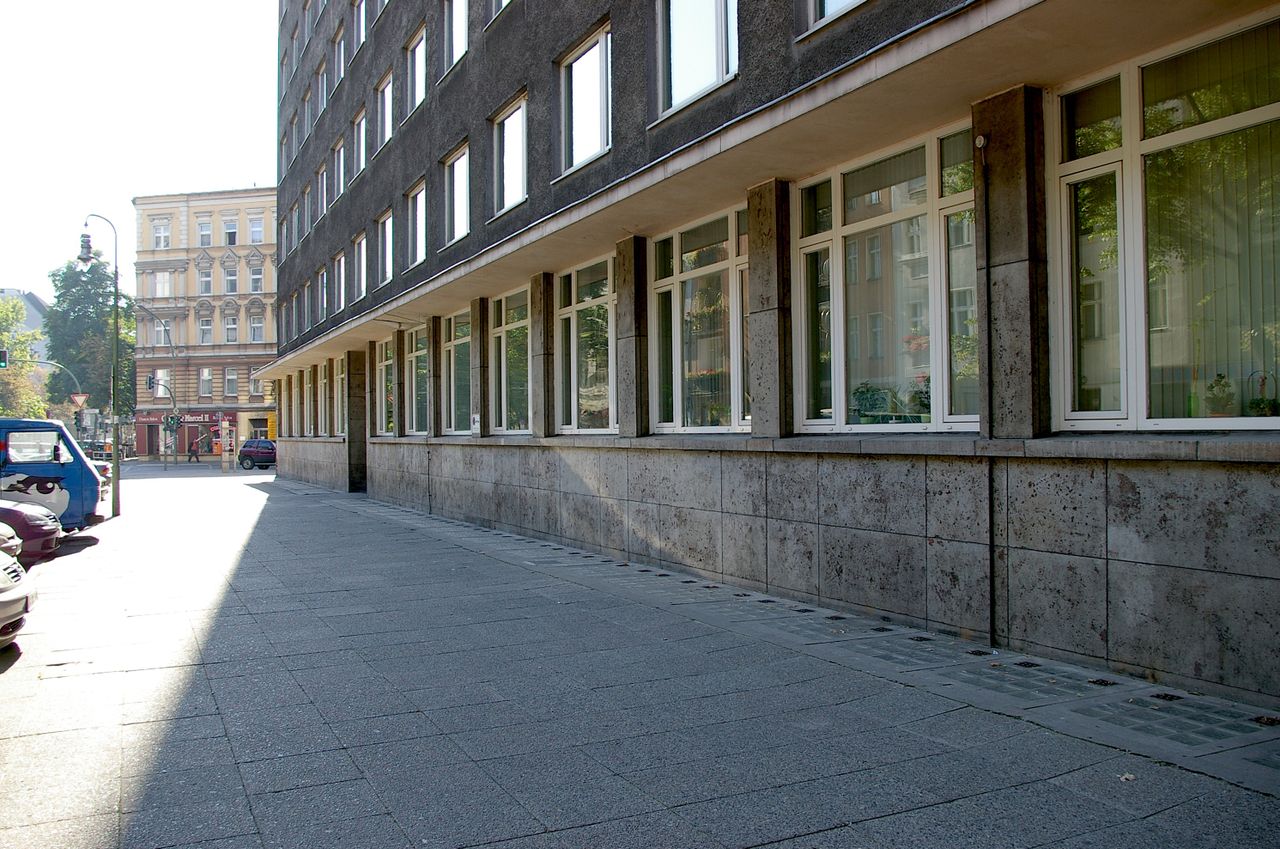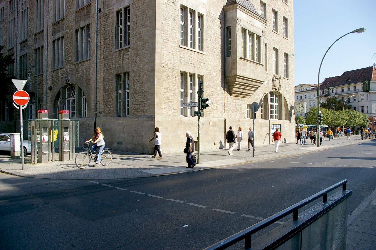 Der 1905/ 09 errichtete vier- bis fünfgeschossige Bau mit gestaffeltem Giebel ist mit monumentalisierenden Werksteinplatten verkleidet. Die Funktion der Räume des eigentlichen Rathausteils wird auch nach außen hin sichtbar gemacht: die Bogenfenster im EG deuten die Kassenräume an, während die langgestreckten Fenster des 1. und 2. Geschosses die Sitzungssäle zu erkennen geben.