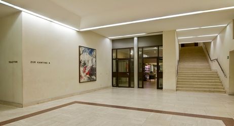Ratskeller im Rathaus Schöneberg, als Kantine genutzt, großer Saal für 200-250 Personen, vorderer Teil durch große Türen abzutrennen. Z.T. schöne, alte Holzverkleidung an den Wänden
