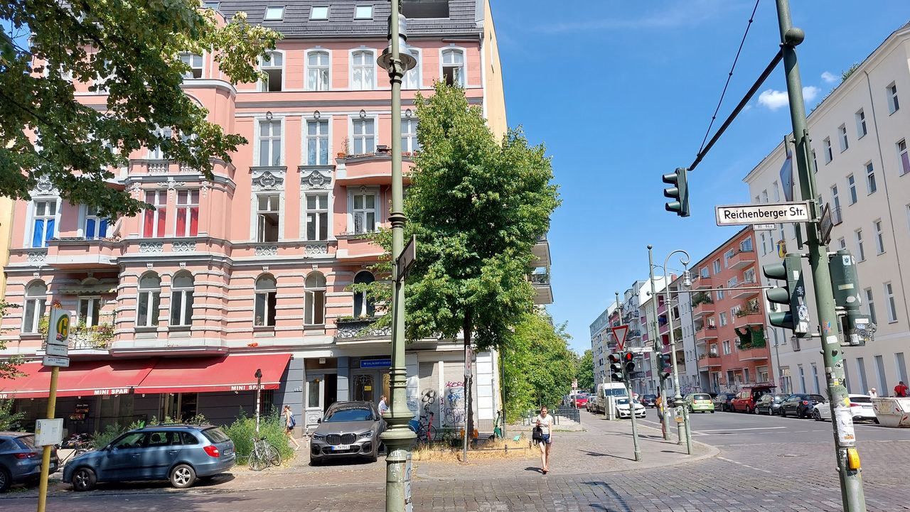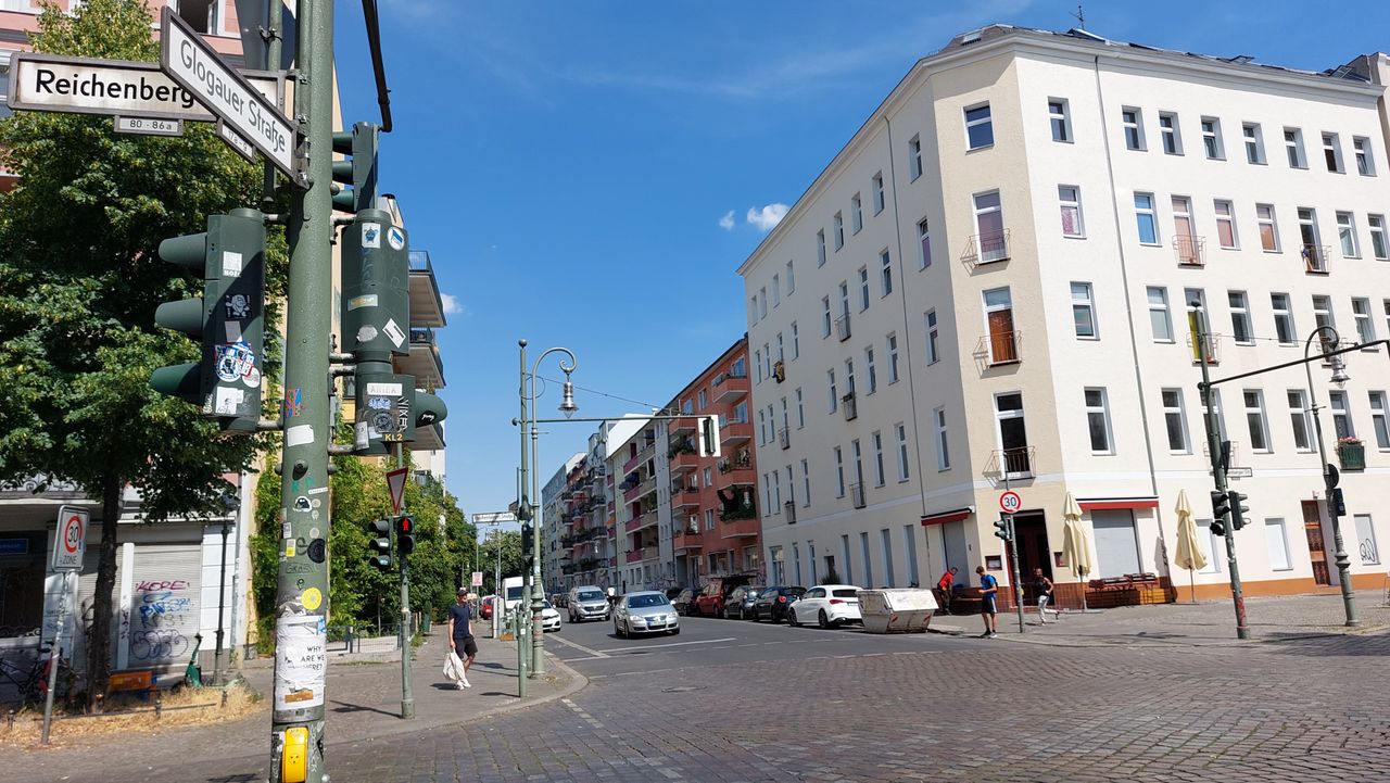 Die Reichenberger Straße, eine Wohnstraße mit einigen Geschäften durchquert das heutige Kreuzberg auf zwei Kilometer Länge von Westen nach Osten. Sie verläuft geradlinig parallel zum Landwehrkanal.