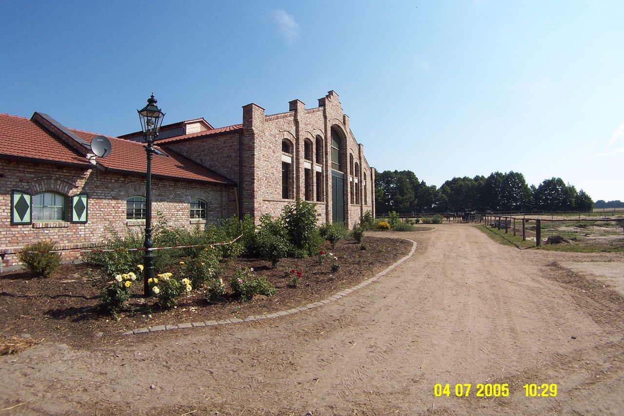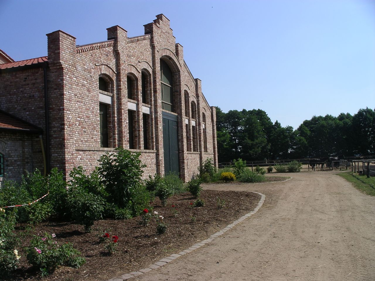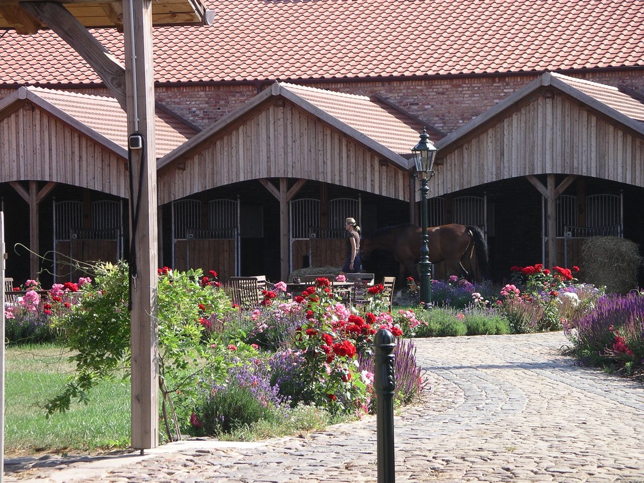 Zwei unmittelbar nebeneinanderliegende Reiterhöfe. In liebevoll sanierten Klinkergebäuden mit großer Reithalle. Rosencarree ist ein Vierseitenhof, Rosenhof ein Hof mit Pferdeställen und Wohnhaus / Landhaus. Beide Höfe zieren im Sommer blühende Rosenstöcke. Ein Round Pen gehört ebenso zum Hof wie ein Putzplatz, großzügige Pferdekoppeln und ein Reitplatz. Beide Höfe zusammen beherbergen ca. 100 Sport- und Zuchtpferde. Höfe und Besitzerin haben Erfahrung mit Dreharbeiten.
