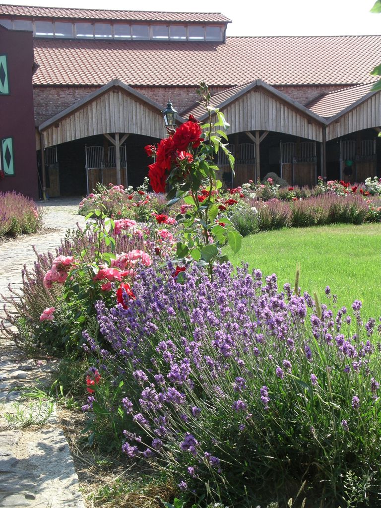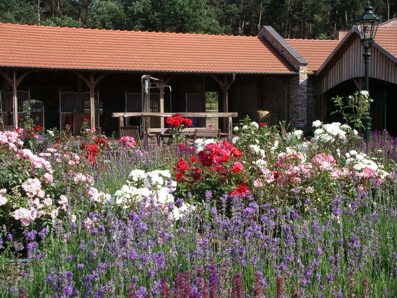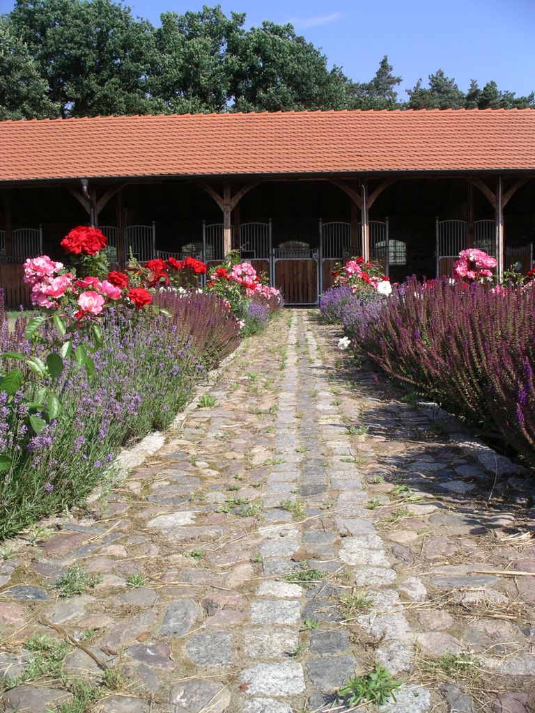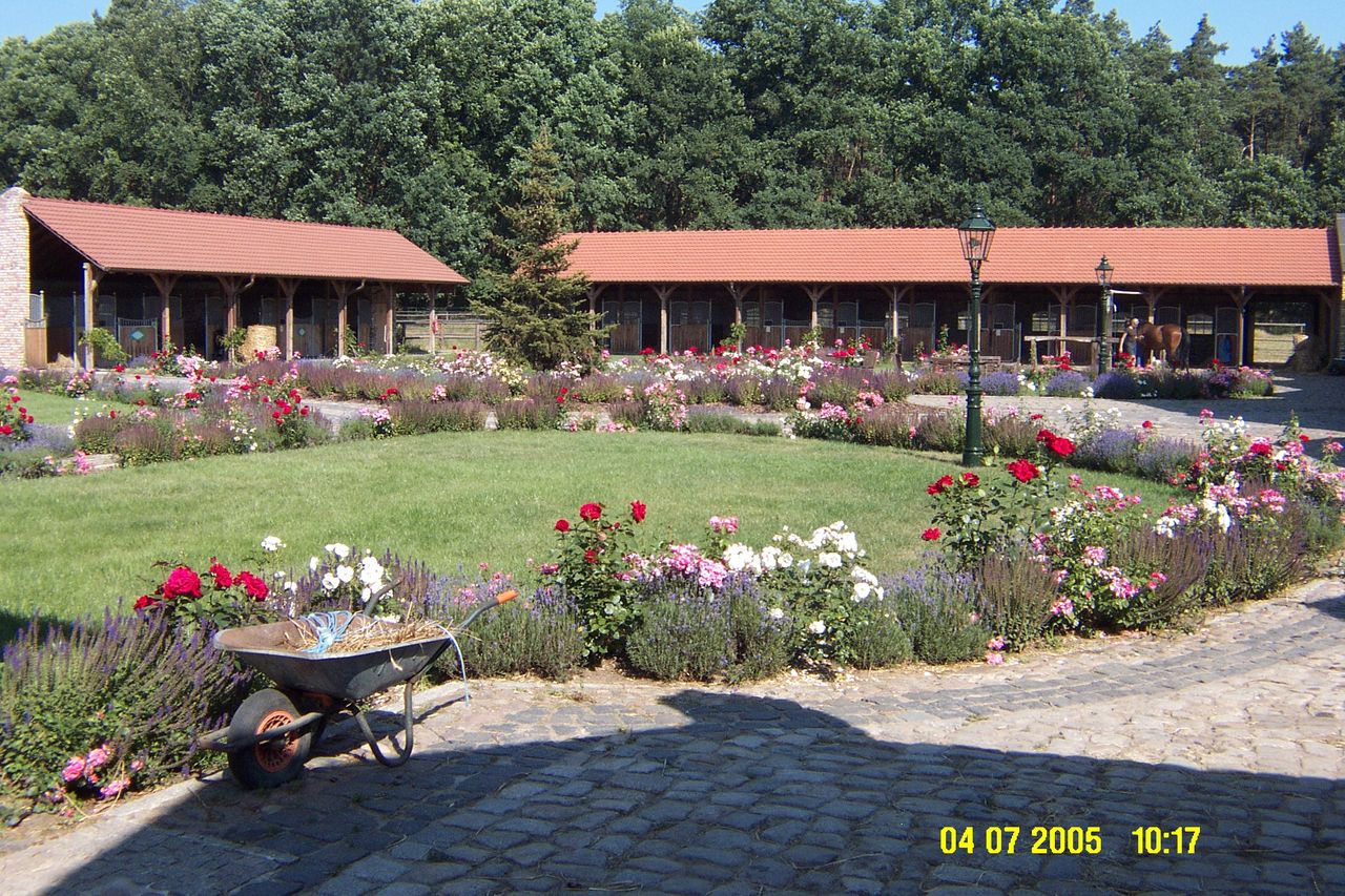 Zwei unmittelbar nebeneinanderliegende Reiterhöfe. In liebevoll sanierten Klinkergebäuden mit großer Reithalle. Rosencarree ist ein Vierseitenhof, Rosenhof ein Hof mit Pferdeställen und Wohnhaus / Landhaus. Beide Höfe zieren im Sommer blühende Rosenstöcke. Ein Round Pen gehört ebenso zum Hof wie ein Putzplatz, großzügige Pferdekoppeln und ein Reitplatz. Beide Höfe zusammen beherbergen ca. 100 Sport- und Zuchtpferde. Höfe und Besitzerin haben Erfahrung mit Dreharbeiten.