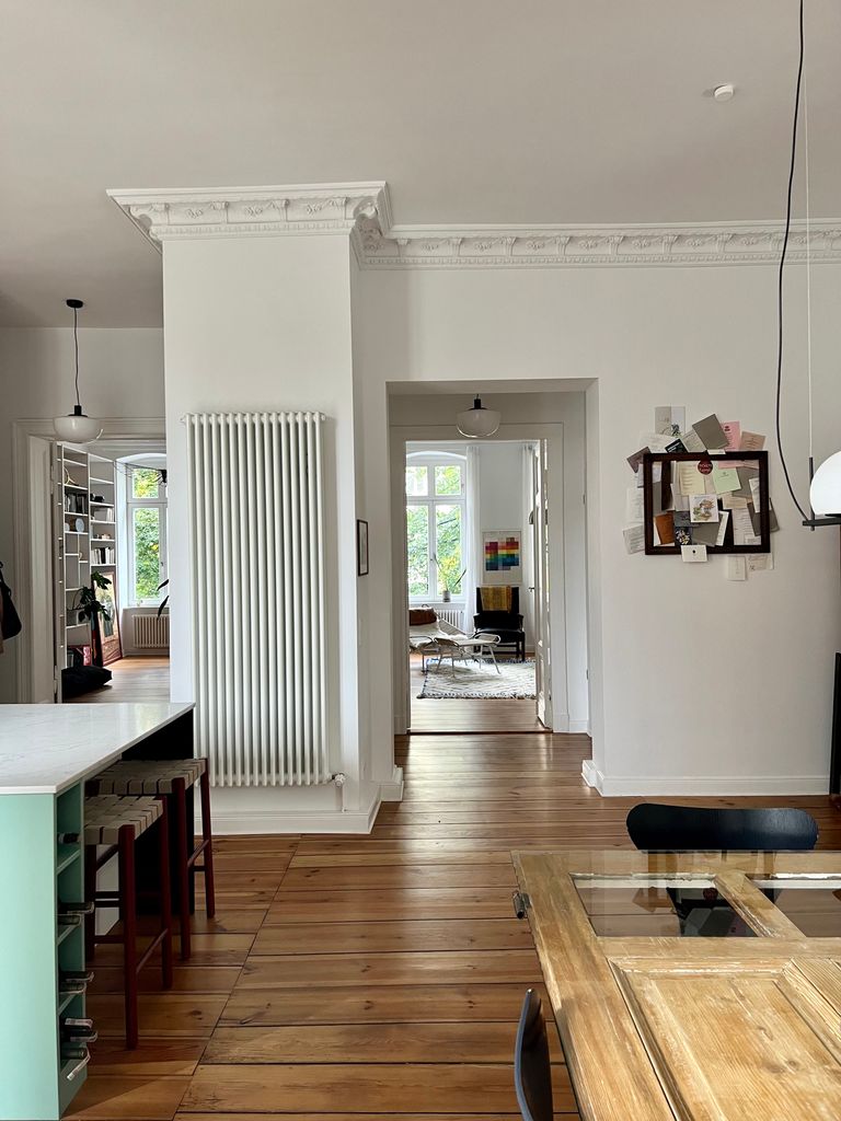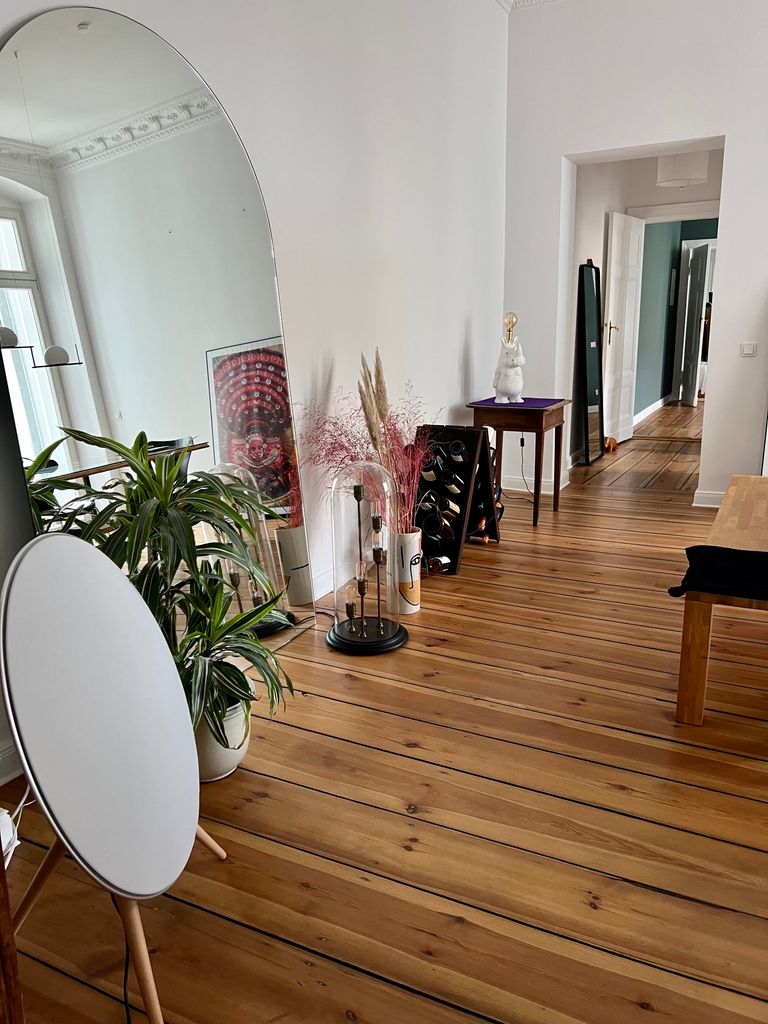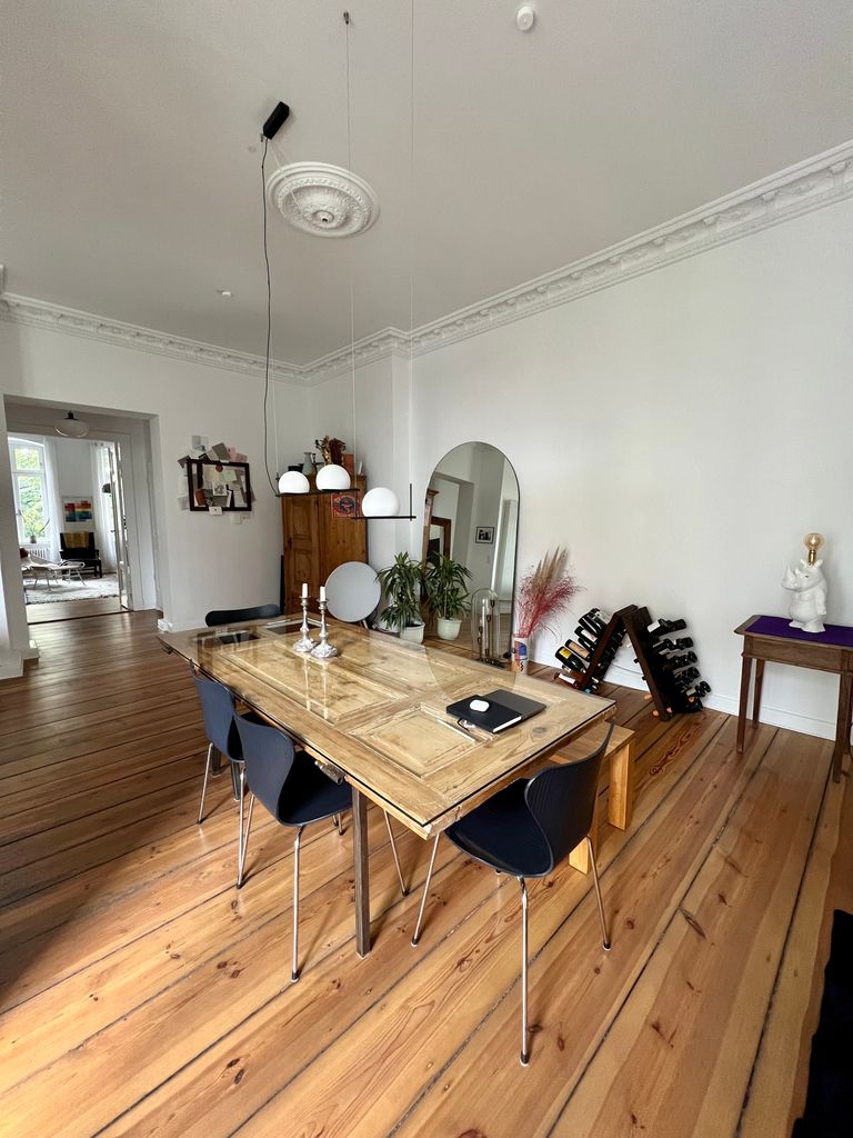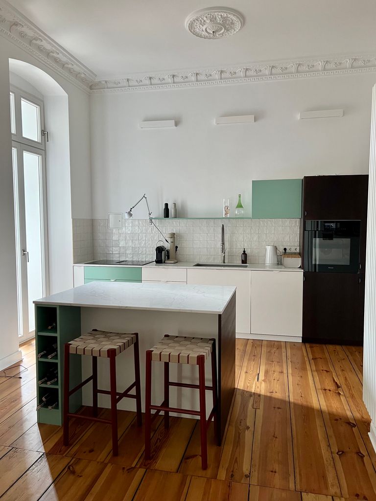 Diese wunderschöne, großzügige Altbau Wohnung mit ca. 3.50m hohen Stuckdecken und 2 Balkonen wurde 2020 zuletzt saniert. Die offene Wohnküche mit Designer-Küche und das zusammengelegte Wohn- und Arbeitszimmer bietet viel Platz zum filmen. Die Wohnung verfügt außerdem über ein gemütliches Schlafzimmer und 2 Vollbäder wovon 1 mit Tageslicht ist.