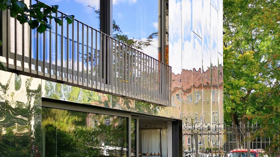 Die Fläche befindet sich auf dem Gelände des ehemaligen Bekleidungsamts des Königlichen Corps in Berlin-Moabit. Der moderne Sichtbeton-Neubau wurde von den renommierten Architekten Sauerbruch Hutton entworfen und fügt sich mit seiner klaren Formsprache und spiegelnden Fassade harmonisch in das architektonische Umfeld ein.