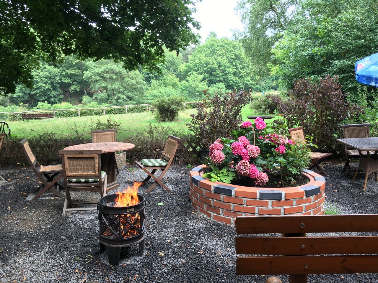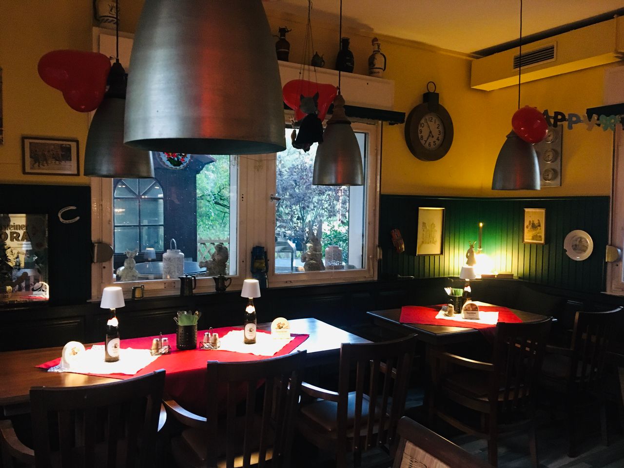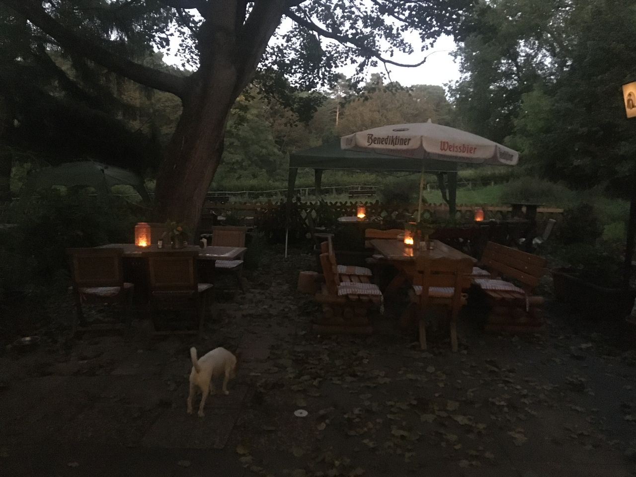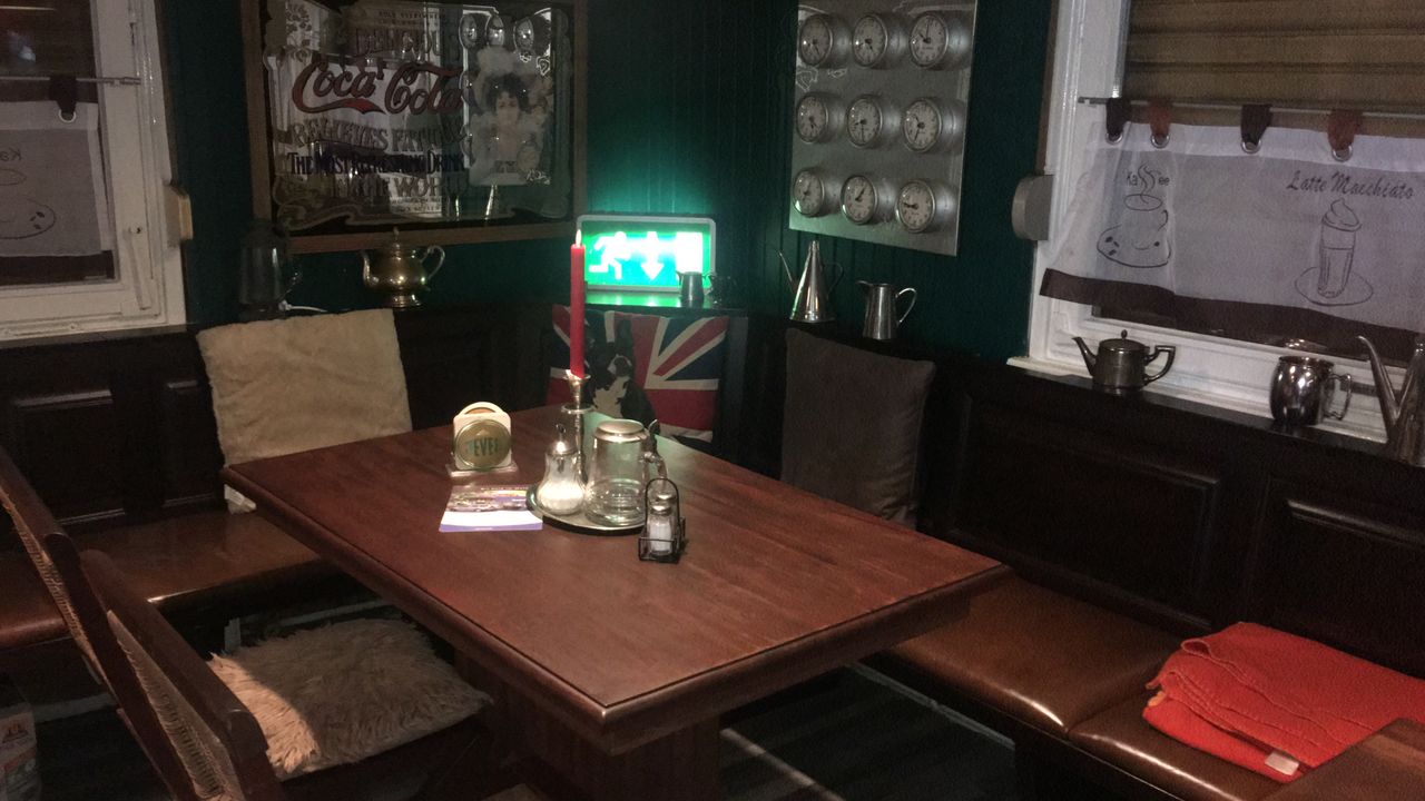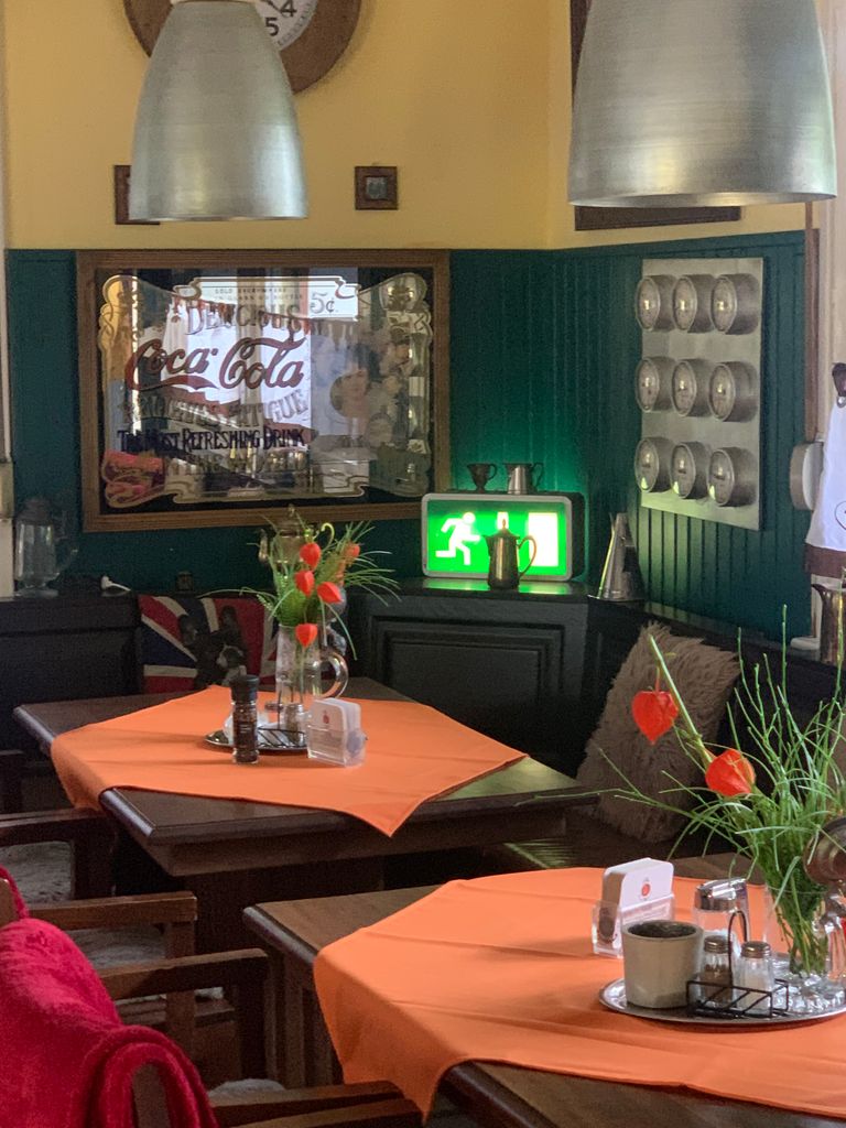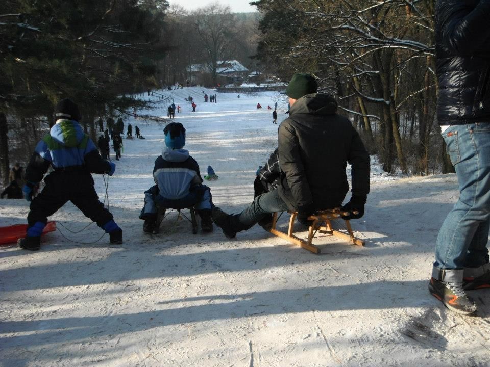 Kleines mitten im Grunewald ( Bezirk Zehlendorf) vom Wald umgebenes Restaurant/ Kneipe.Die kleine Hütte, gibt es seit 1930 und macht den Anschein eines Fachwerkhauses. Der Biergarten hat 40 Sitzplätze mit Blick auf die Rodelbahn und den Grunewald.( Wald und Wiese ) Die vordere Terrasse