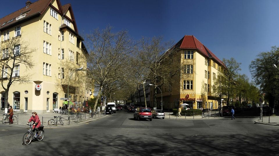 Ruhiger verkehrsarmer Platz mit Grünanlage, sowie Kinderspielplatz, umgeben von Wohnhäusern aus der Gründerzeit.