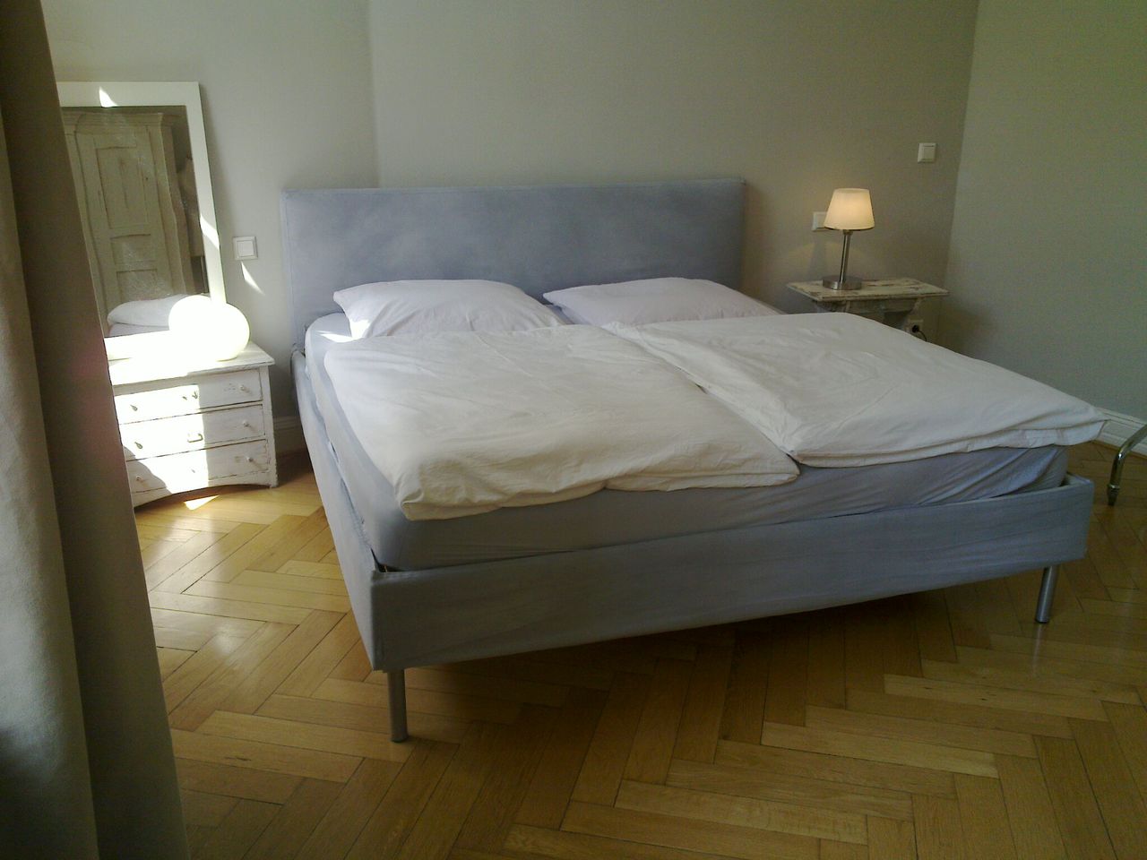 Detailverliebte 2-Zimmer Altbauwohnung in Berlin Mitte. 67 Quadratmeter, hell, geräumig, möbliert. Großes Wohnzimmer mit offener Küche und Doppelschwingtür ins anliegende Schlafzimmer. Hohe Wände und Fenster (Doppelfenster), Stuck an der Decke, original Türen. Wandfarbe: grau. Fußboden: abgezogenes und lackiertes Fischgrätenparkett in der ganzen Wohnung. Küche: Marmorfliesen. Modernes Badezimmer in weiß- und Grautönen. Moderne, offene Küche mit Gefrierfach, Herd, Ofen, Spülmaschine. Die Wohnung verfügt über ein eigenes Wendeltreppenhaus mit separatem Eingang.