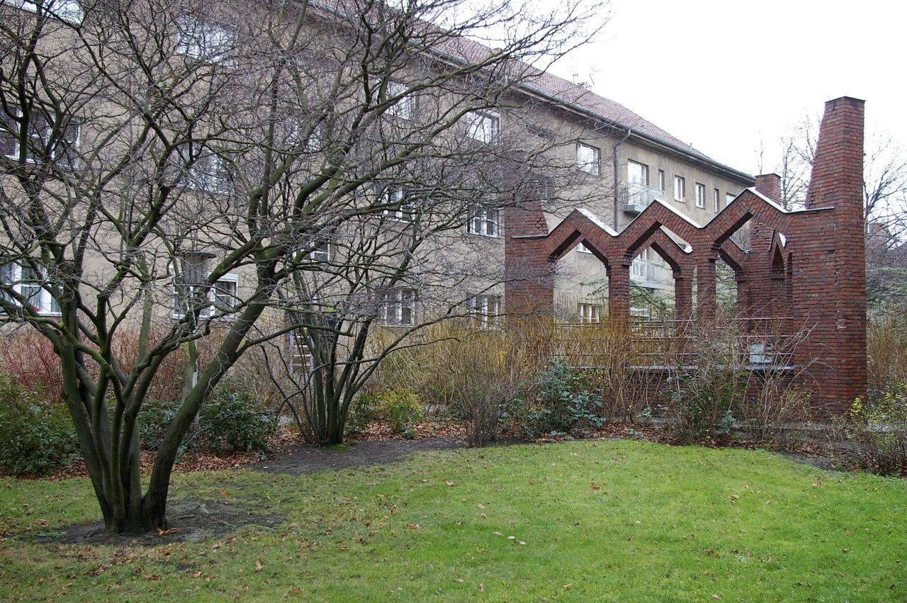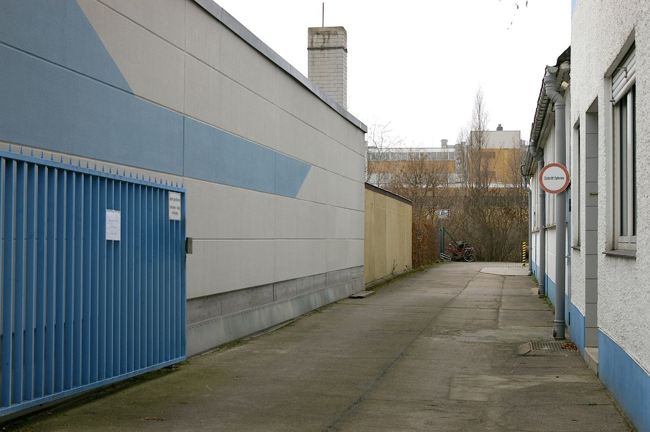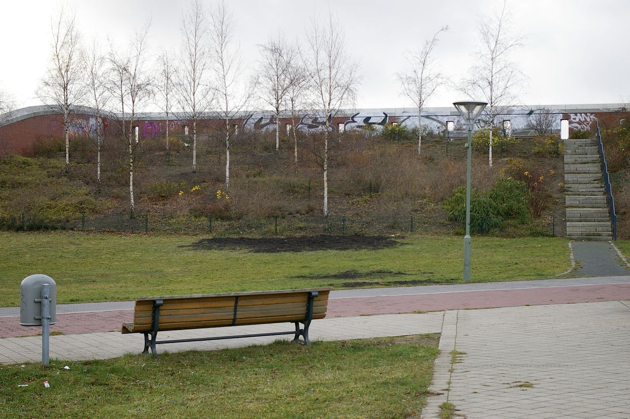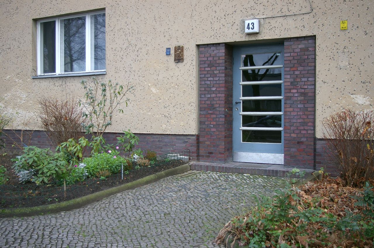Wohnstraße in Berlin Tempelhof, direkt an der Autobahn mit tristen, kleinstädtisch anmutenden Wohnblöcken und Industriegebäuden.