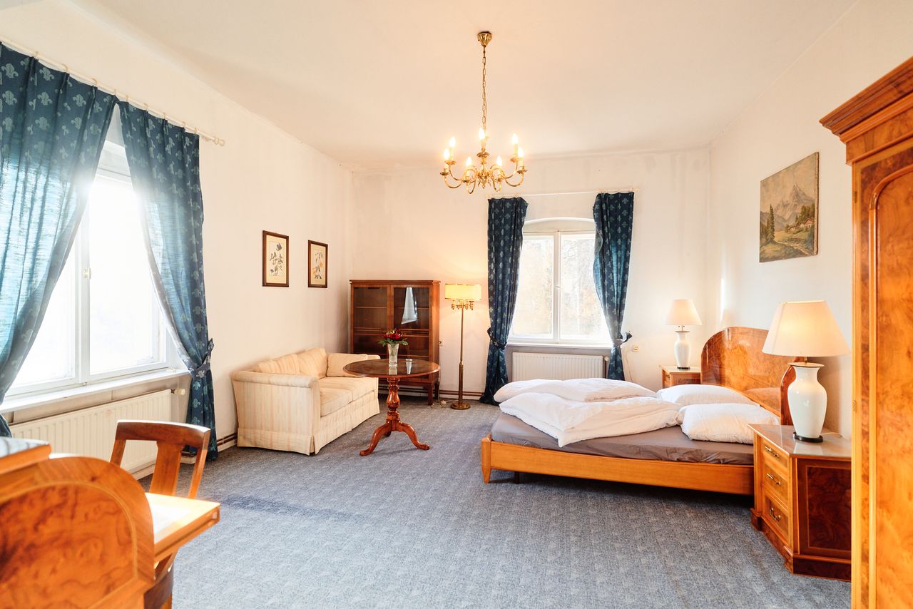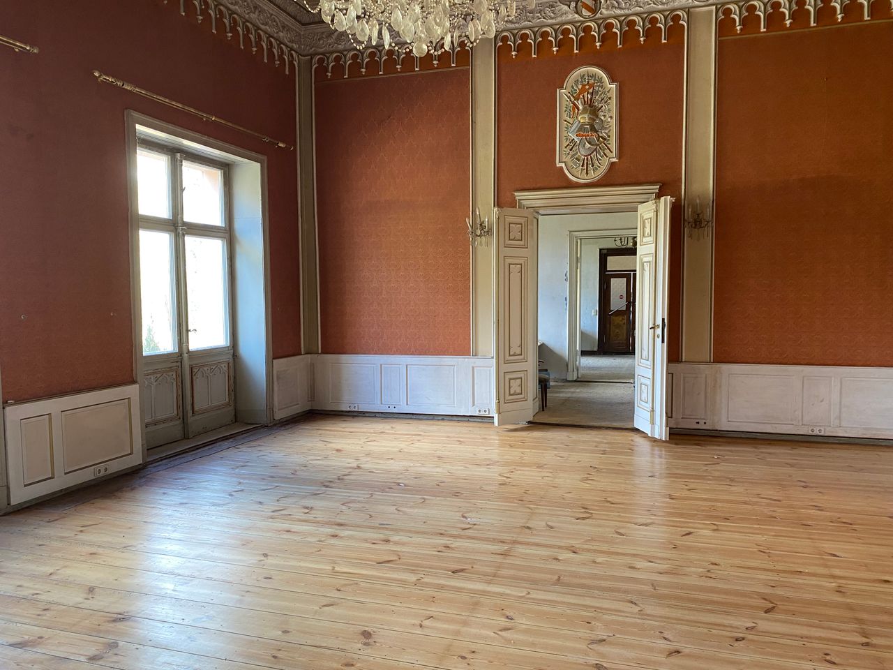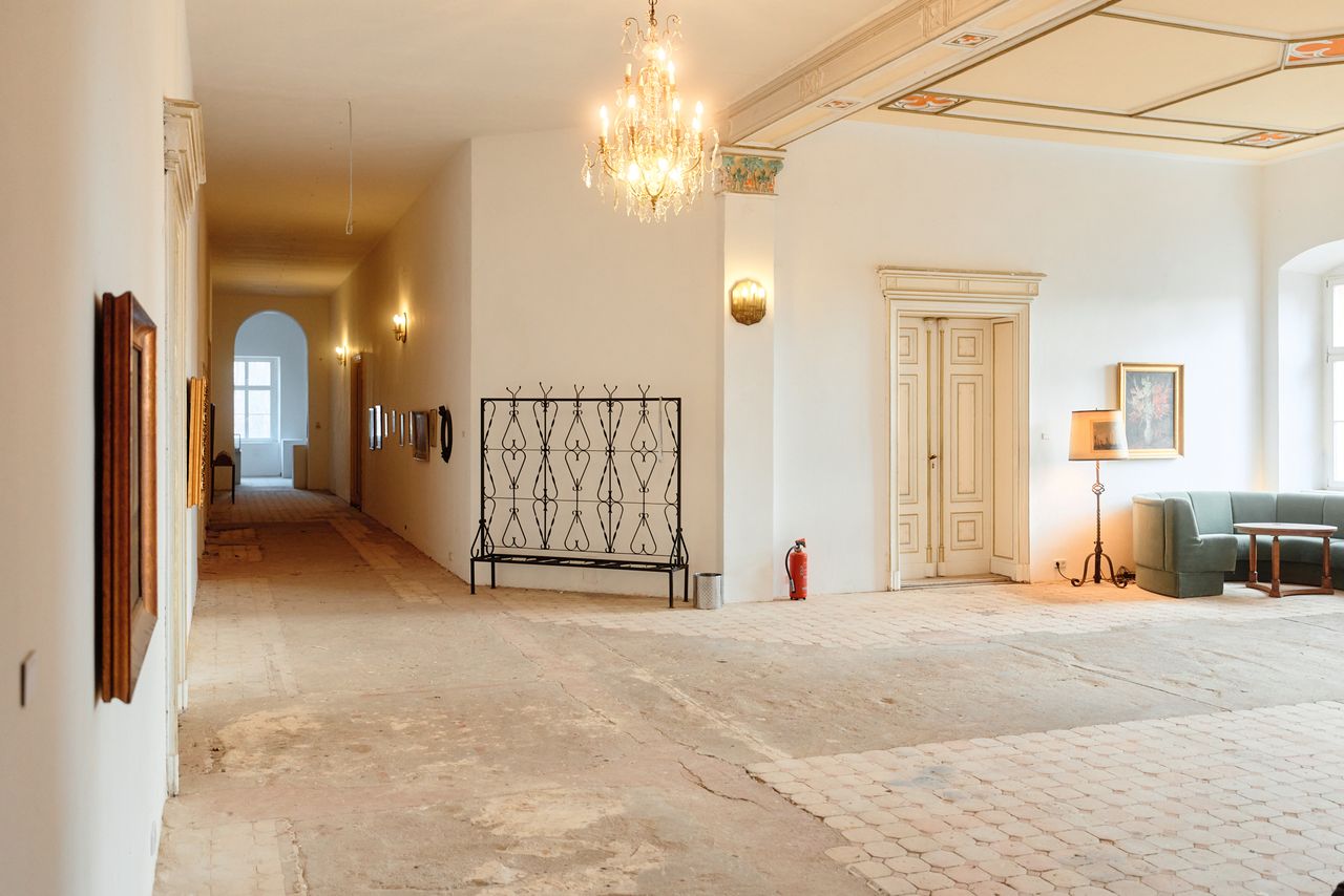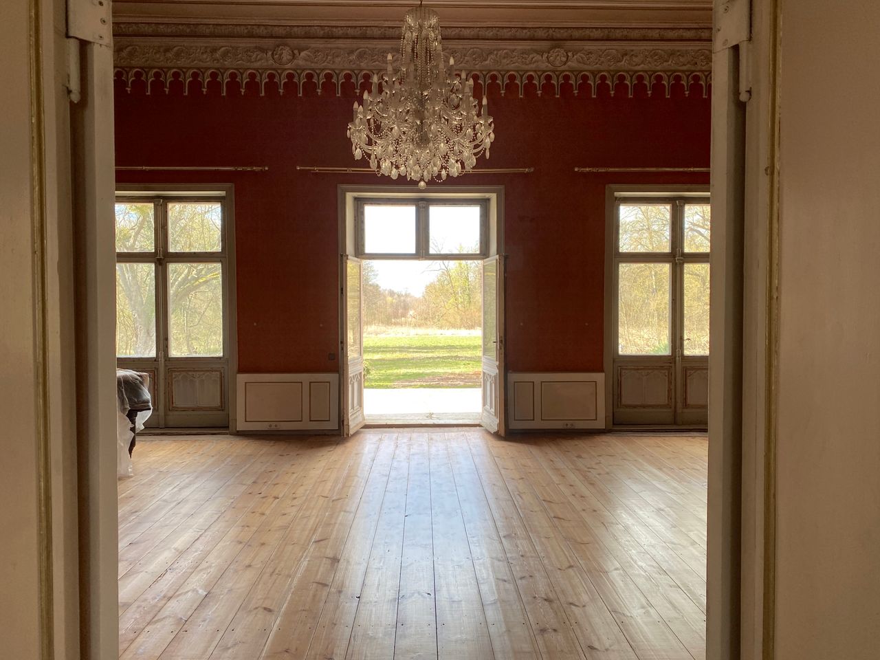 Denkmalgeschütztes Schloss mit wechselvoller Geschichte. Eng verbunden mit dem preußischen Adel, ideal für Drehs über einen längeren Zeitraum und unter "isolierten" Bedingungen. 2 große Säle mit Weitblick in den zugehörigen, sehr großen, privaten Park (300.000 m²).